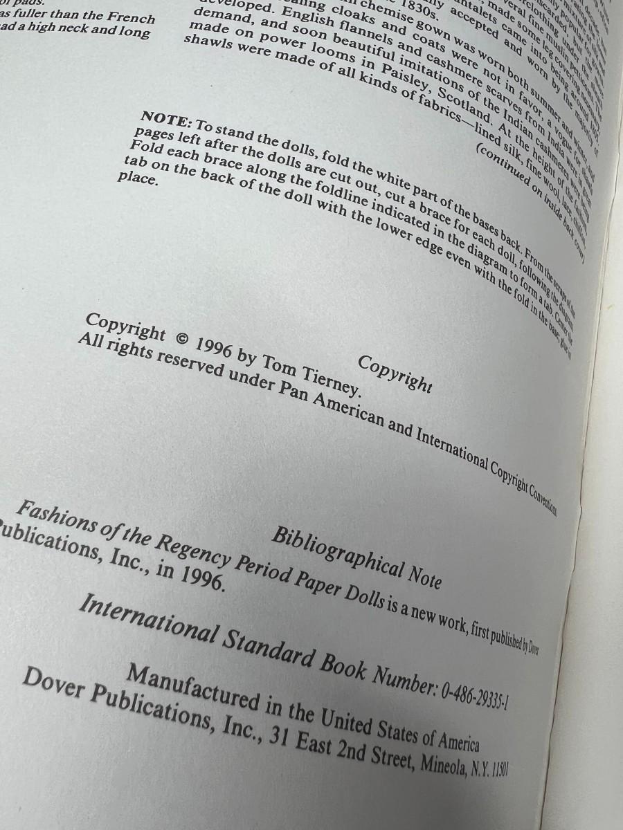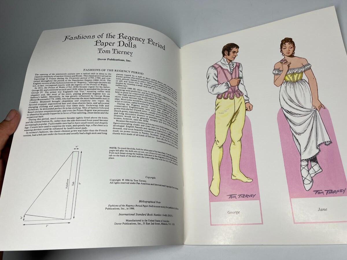 Pair of Arts and Crafts Books Fashions of the Regency Period Paper Dolls & Empire Fashions Coloring Book, there is no significant damage to either of the books and is in good condition. None of the paper dolls or coloring book pages have not been used, check pictures for more details and for sizing.