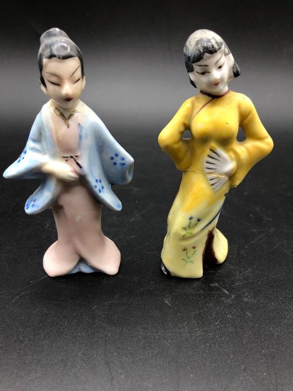 Pair of Asian Woman Figurines. Made in Occupied Japan. Good Condition.