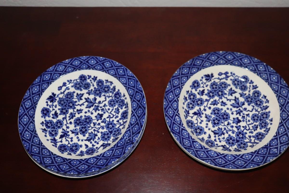 Pair of Assiette antique 1880 Ridgway Hawthornden Staffordshire bleu blanc floral