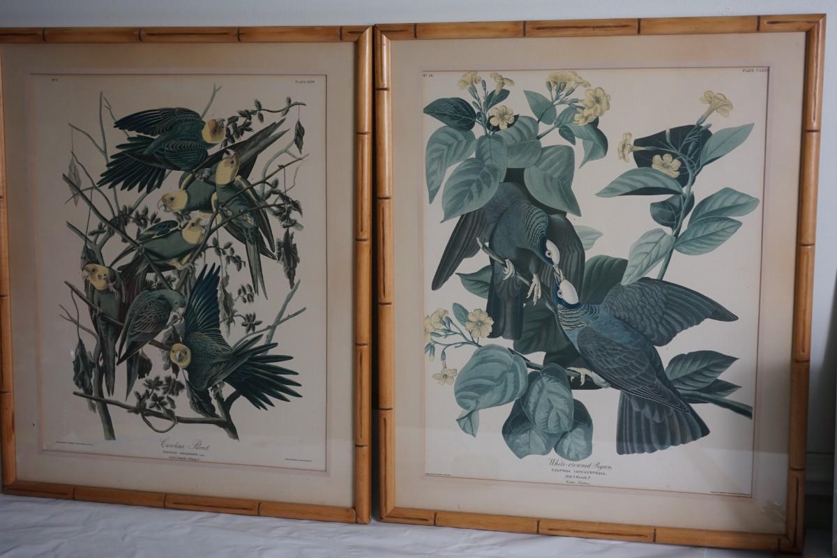 PAIR OF AUDUBON PHOT0 PRINTS FROM CALENDAR OF BIRDS FRAMED IN 1940-50'S FRAMES