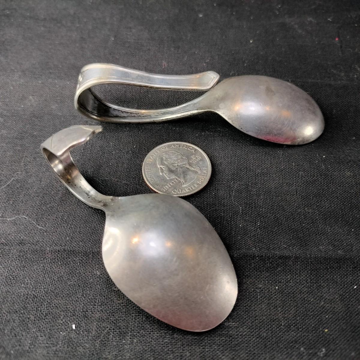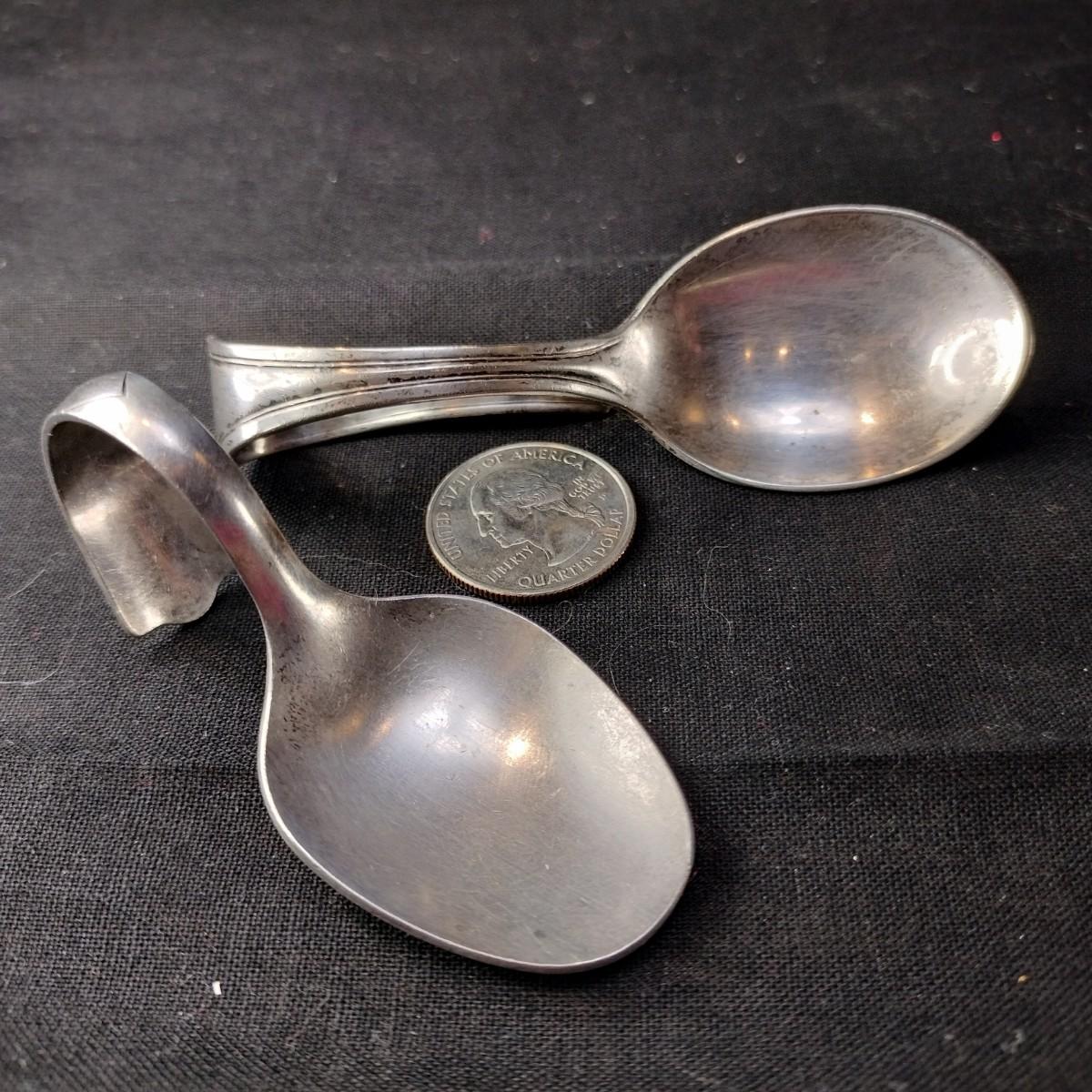 This auction lot is for a Pair of Baby Spoons. The baby spoon in the foreground is marked Sterling by Web Sterling Co. The spoon in the back is unmarked. These are a great addition to your baby spoon collection or for the next little one in your world..