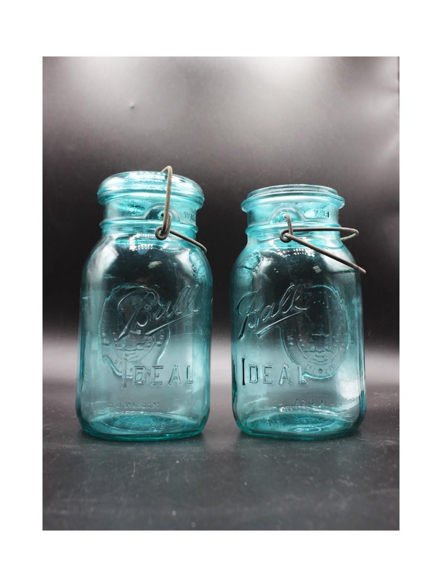 Pair of Turquoise Blue Ball Ideal Bicentennial Historical Reproduction Mason Jars