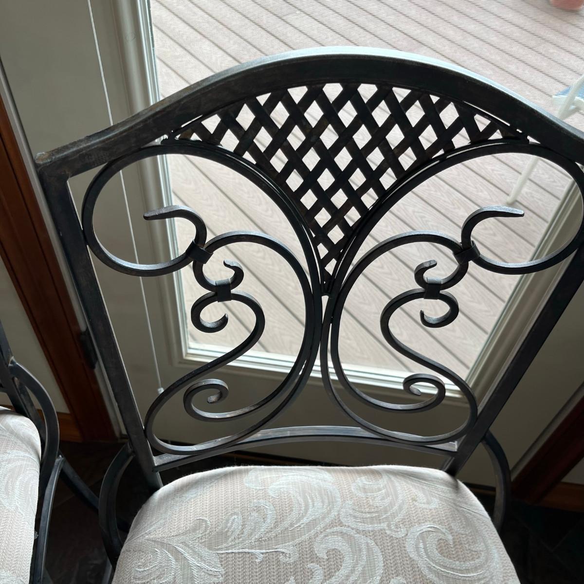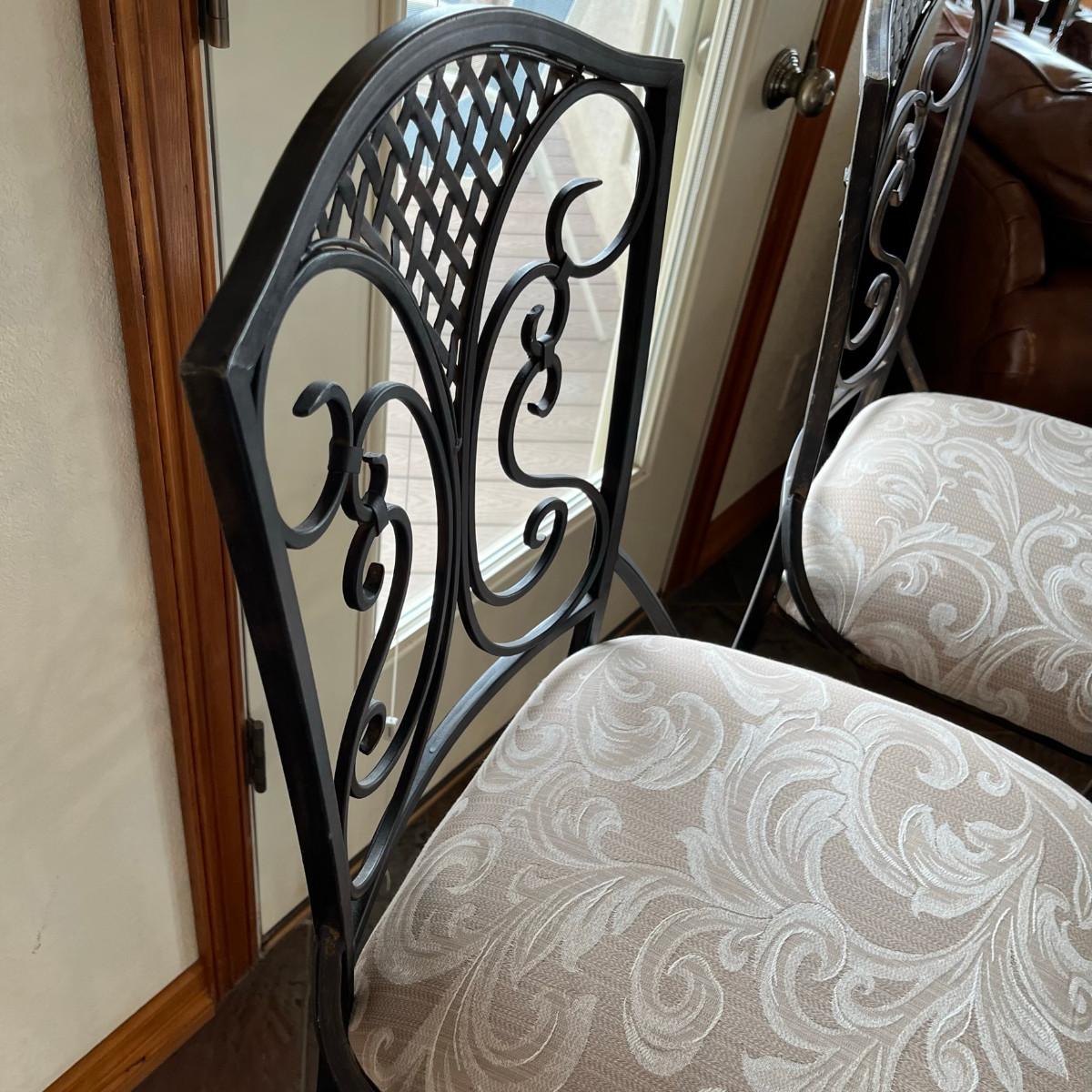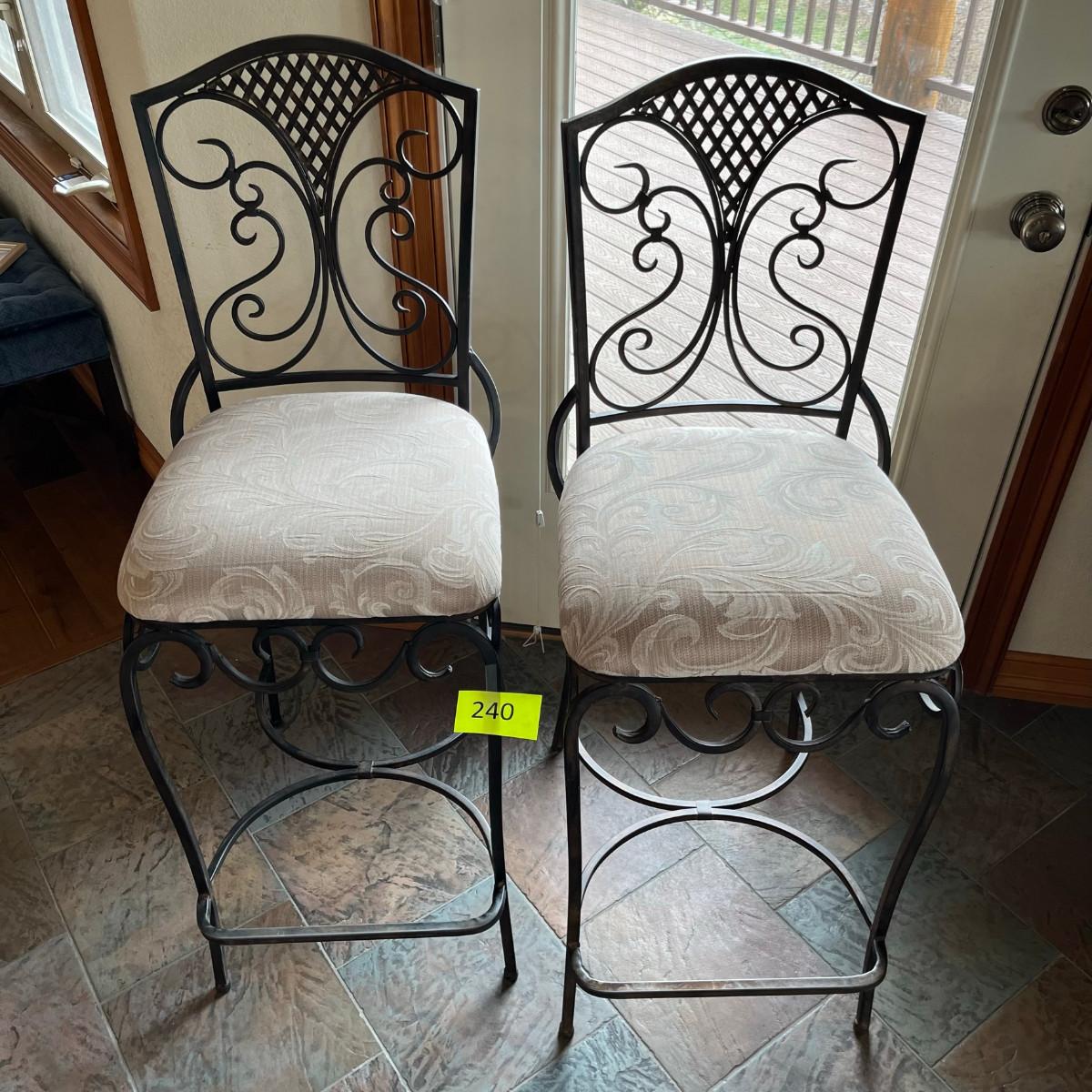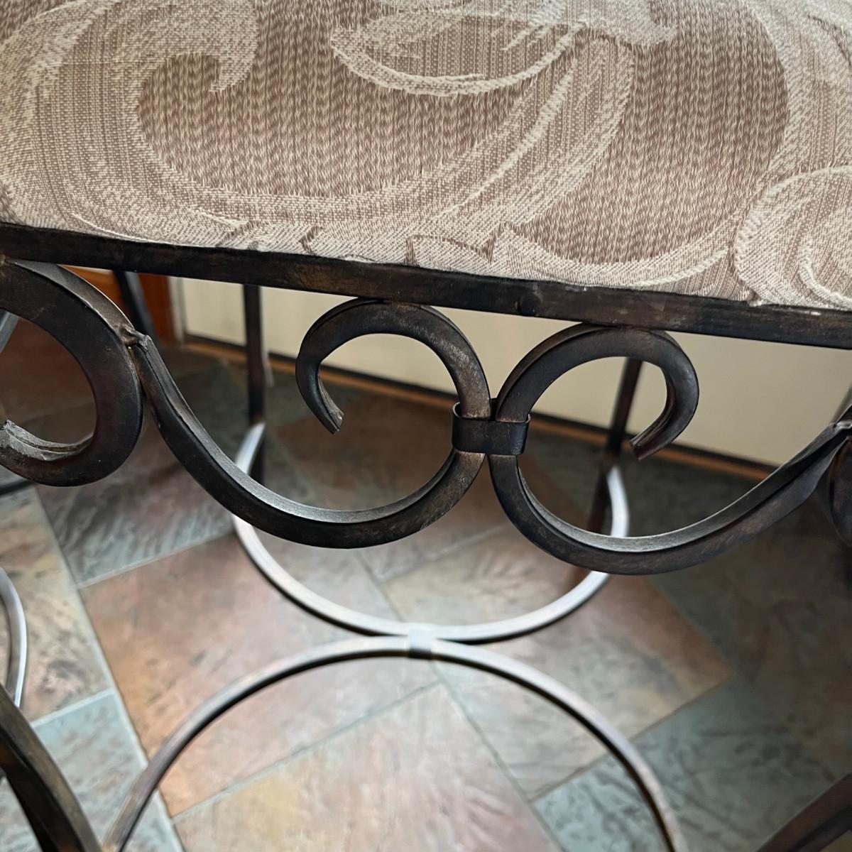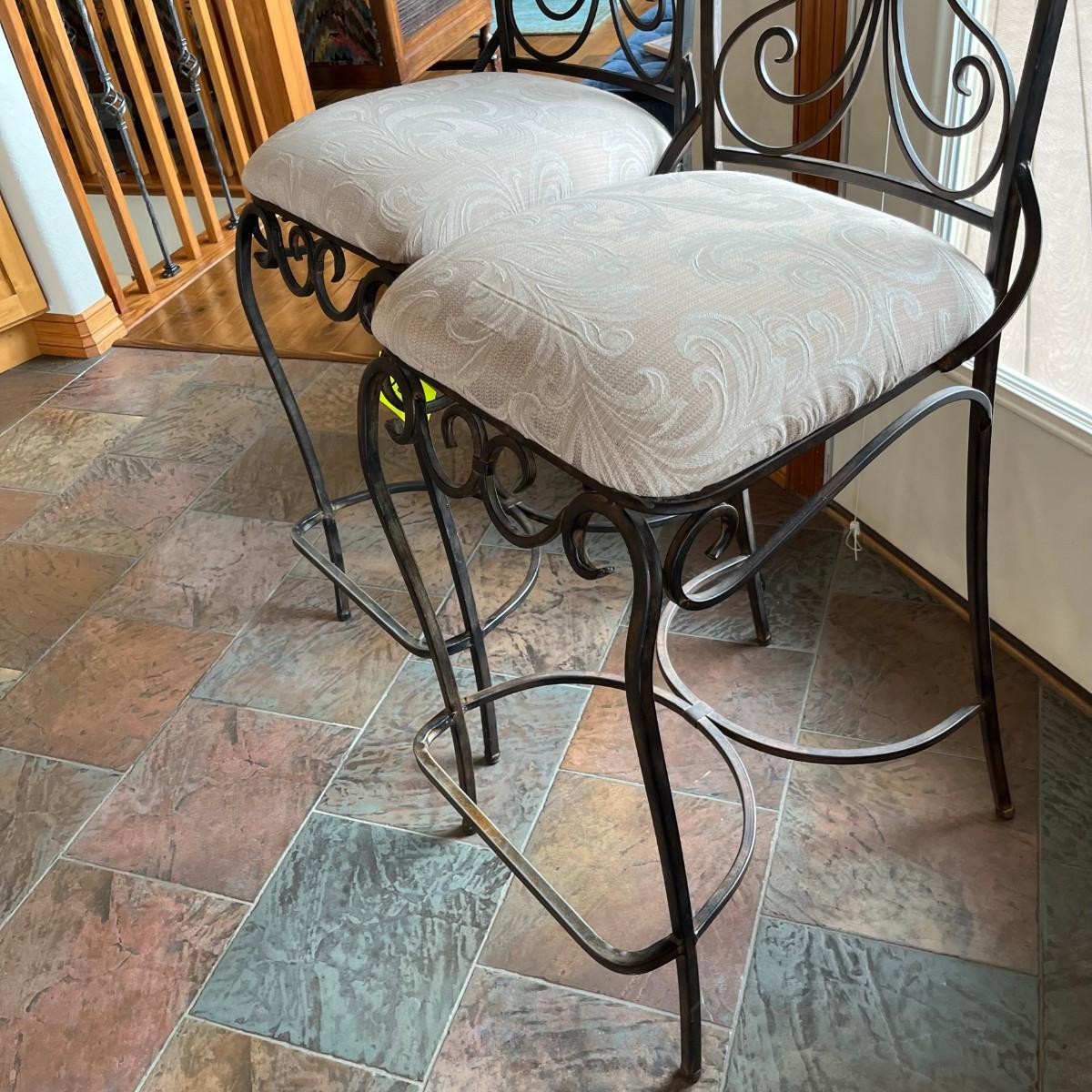 Iron bar stools with brocade upholstery. No stains or damage!