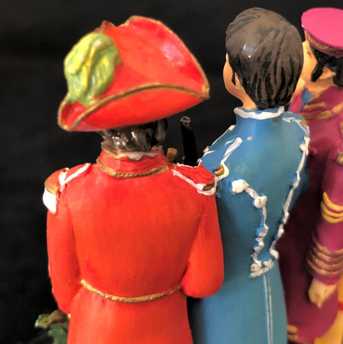 Pair of Beatles Sergeant Peppers Music Domes. One has working music, the other needs some repair to the music. There are no glass domes. One has evidence of repair on one head (shown in photos).