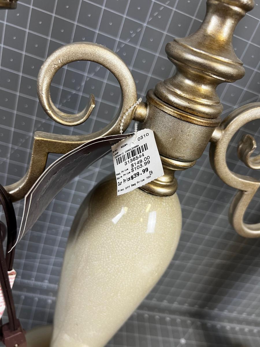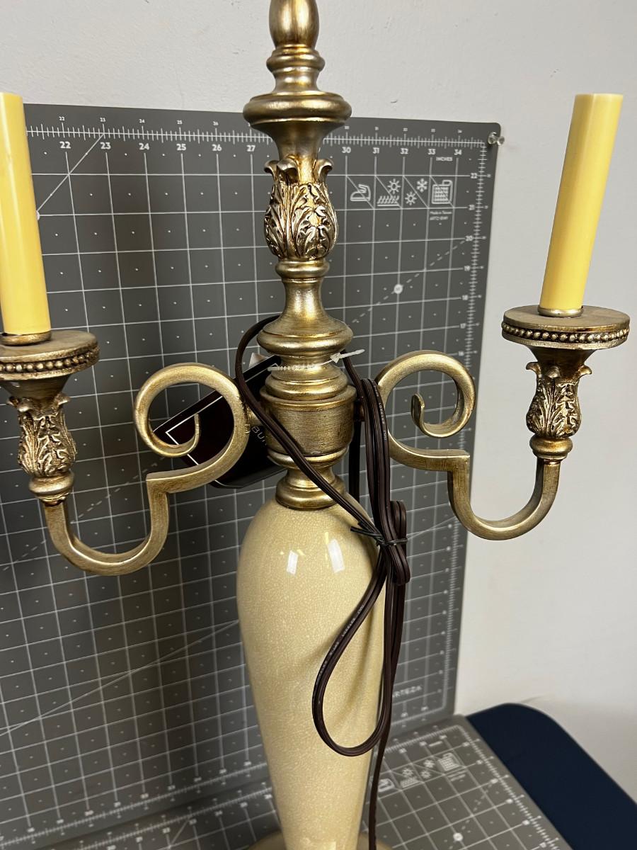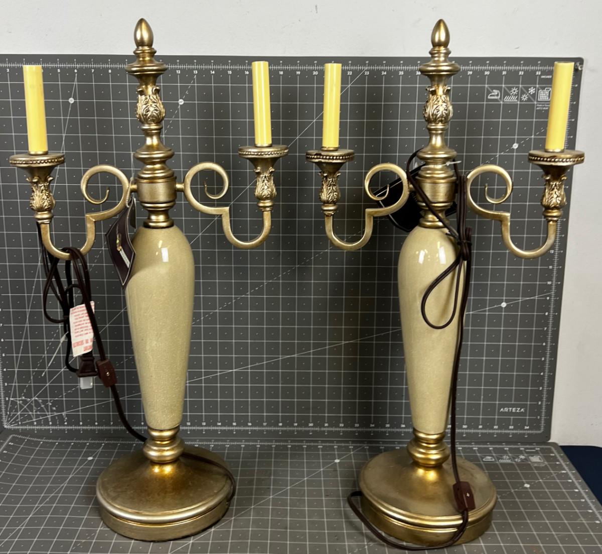 Pair of Beautiful Candle Lamps  24" NEW Metal & Resin Gray and Antique Silver