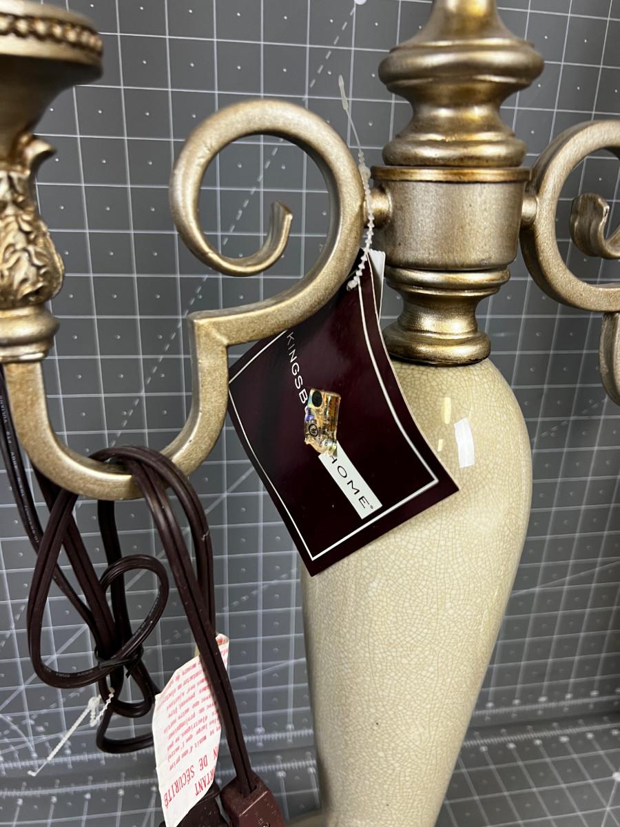 Pair of Beautiful Candle Lamps 24" NEW Metal & Resin Gray and Antique Silver