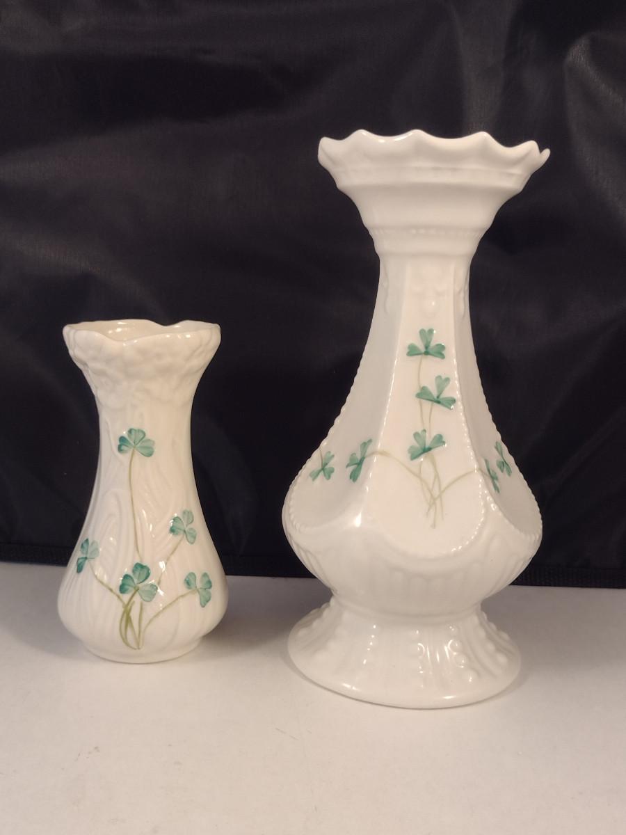 Pair of Belleek Irish Porcelain Shamrock Vases