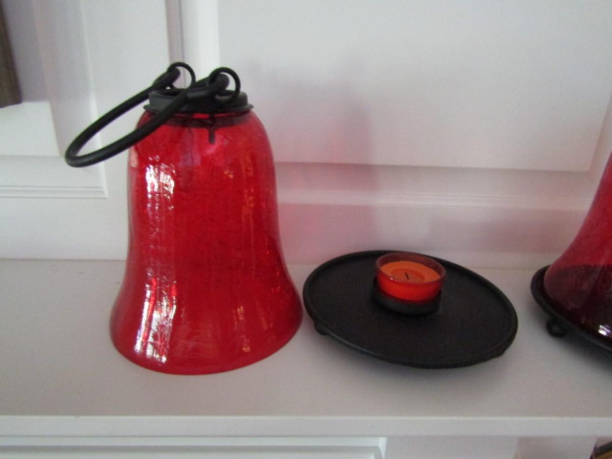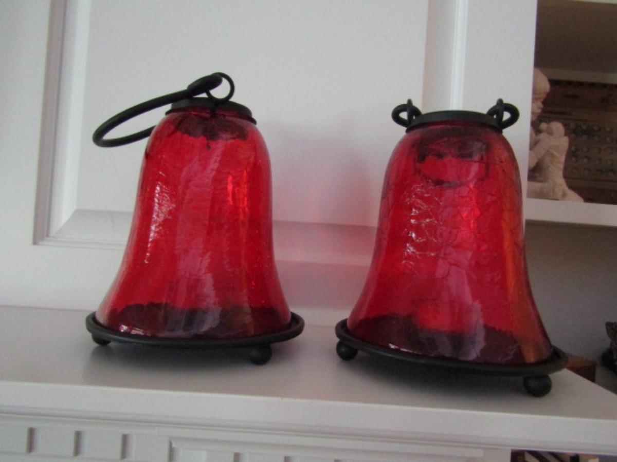 Pair of Bell-Shaped, Glass and Metal Candle Holders