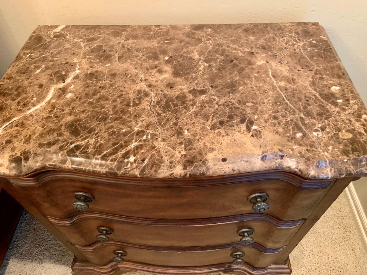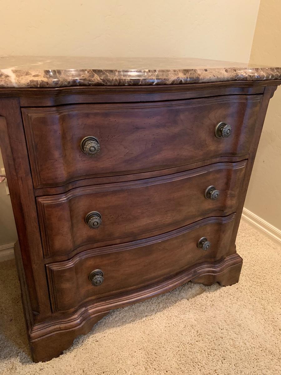 2 Marble top side tables with drawers