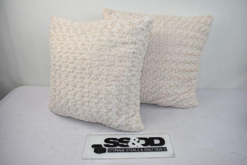 Pair of Better Homes & Gardens Rosette Plush Decorative Toss Pillows, 22" x 22", Ivory, Super Soft, $32 Retail - New