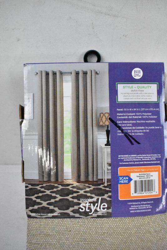 Pair of BH&G Tan Basketweave Curtain Panels - New, Small mark on one as pictured