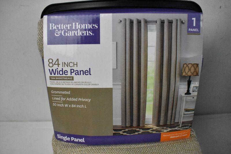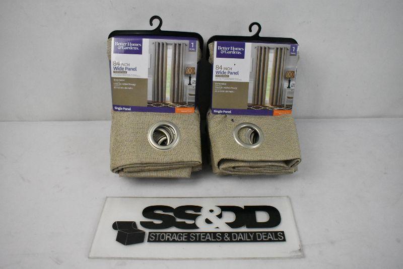 Pair of Better Homes and Gardens Tan Basketweave Curtain Panels - New, Small mark on one as pictured