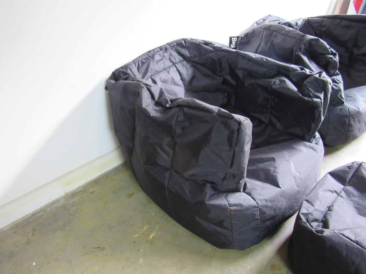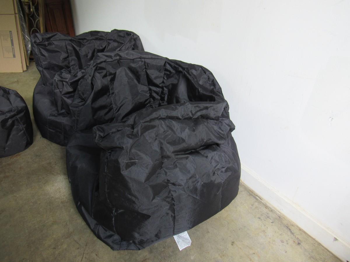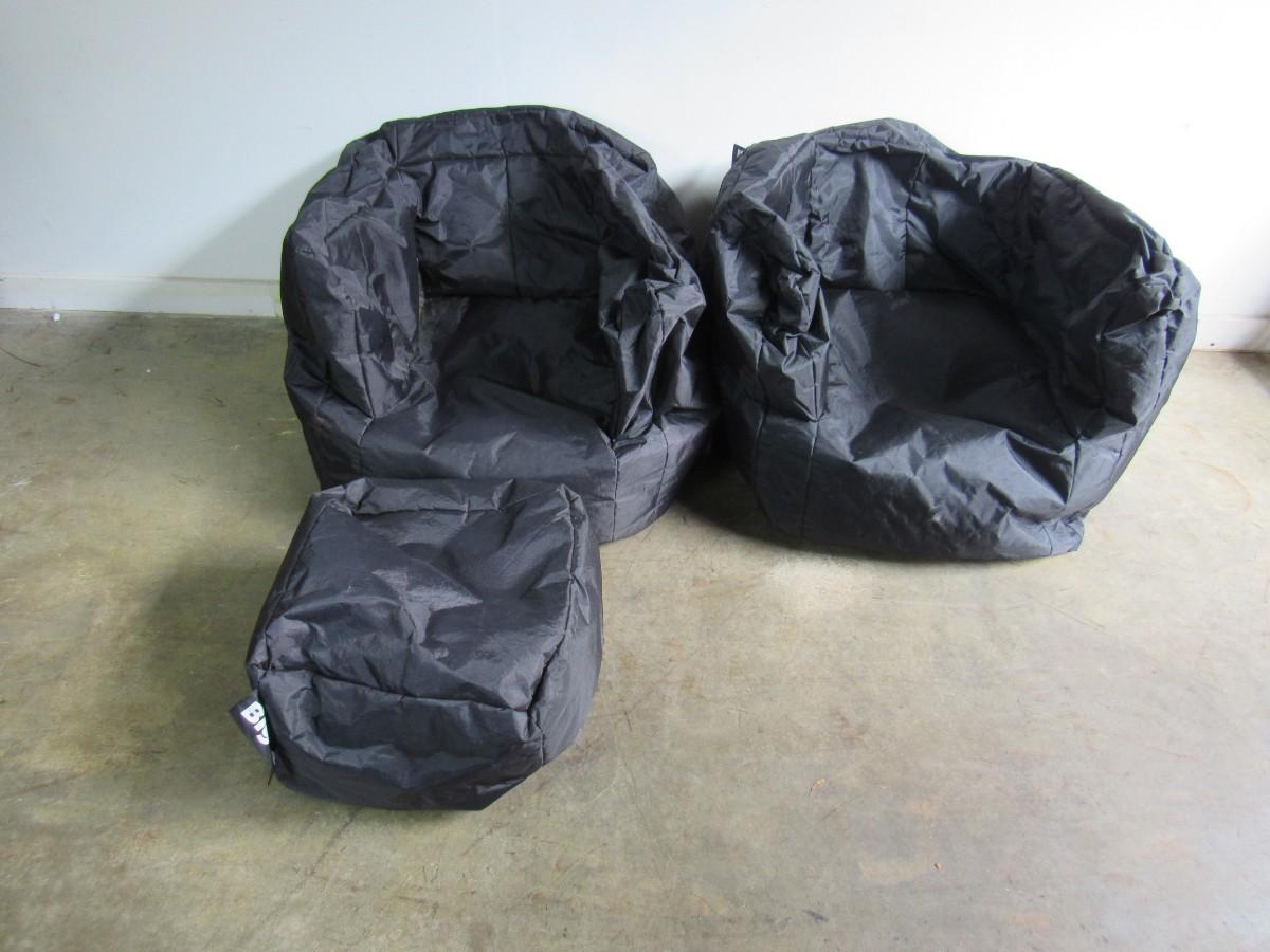 Pair of Black Big Joe Bean Bag Chairs with One Matching Ottoman