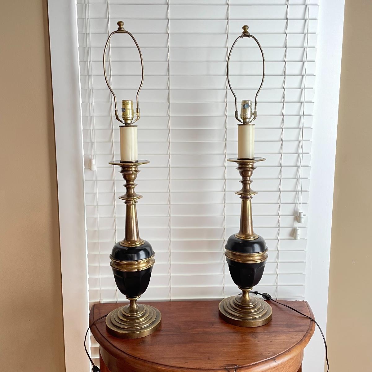 Pair of Black & Brass Vintage Lamps (LR - SS)