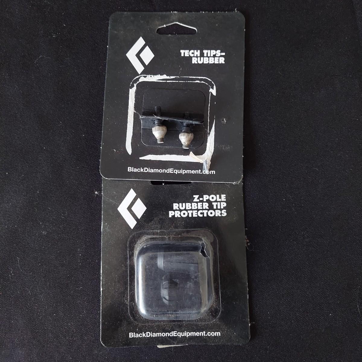 Pair of Black Diamond brand trekking poles that are collapsible with a third pole that is not. Plus, various caps and end pieces for poles. Please see photos for details. Shipping available