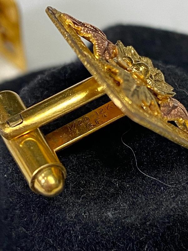 Pair of Black Hills Gold Square Cuff Links 10k 12k