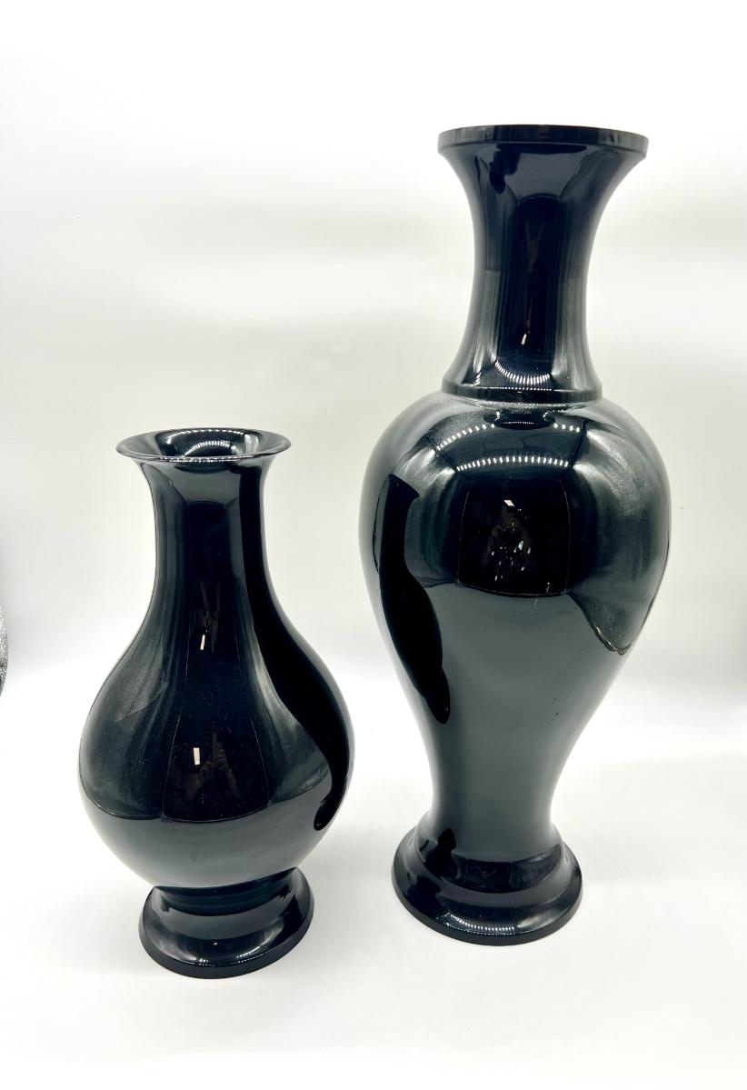 Pair Of  Black Lacquered Mother of Pearl Vase
