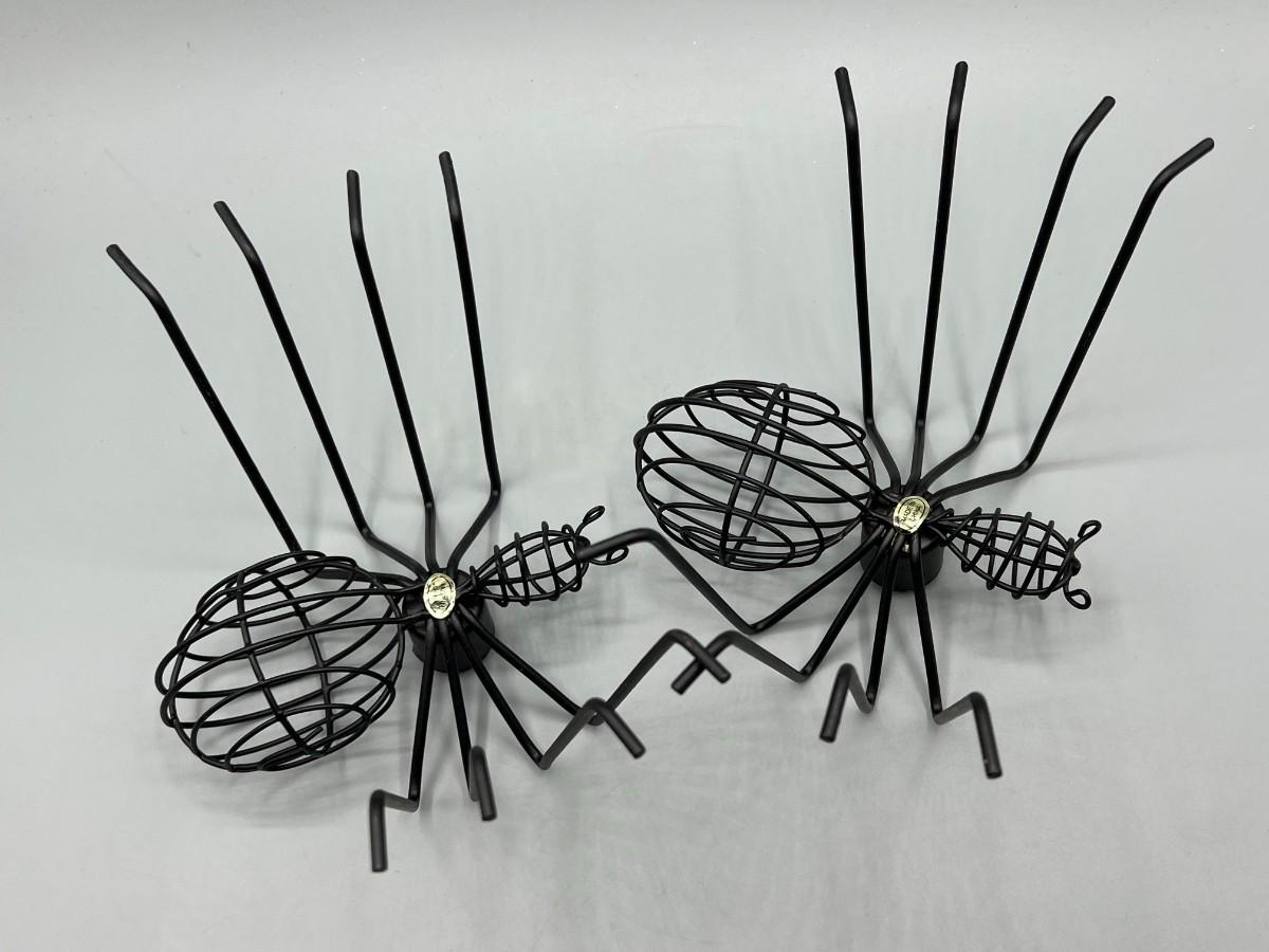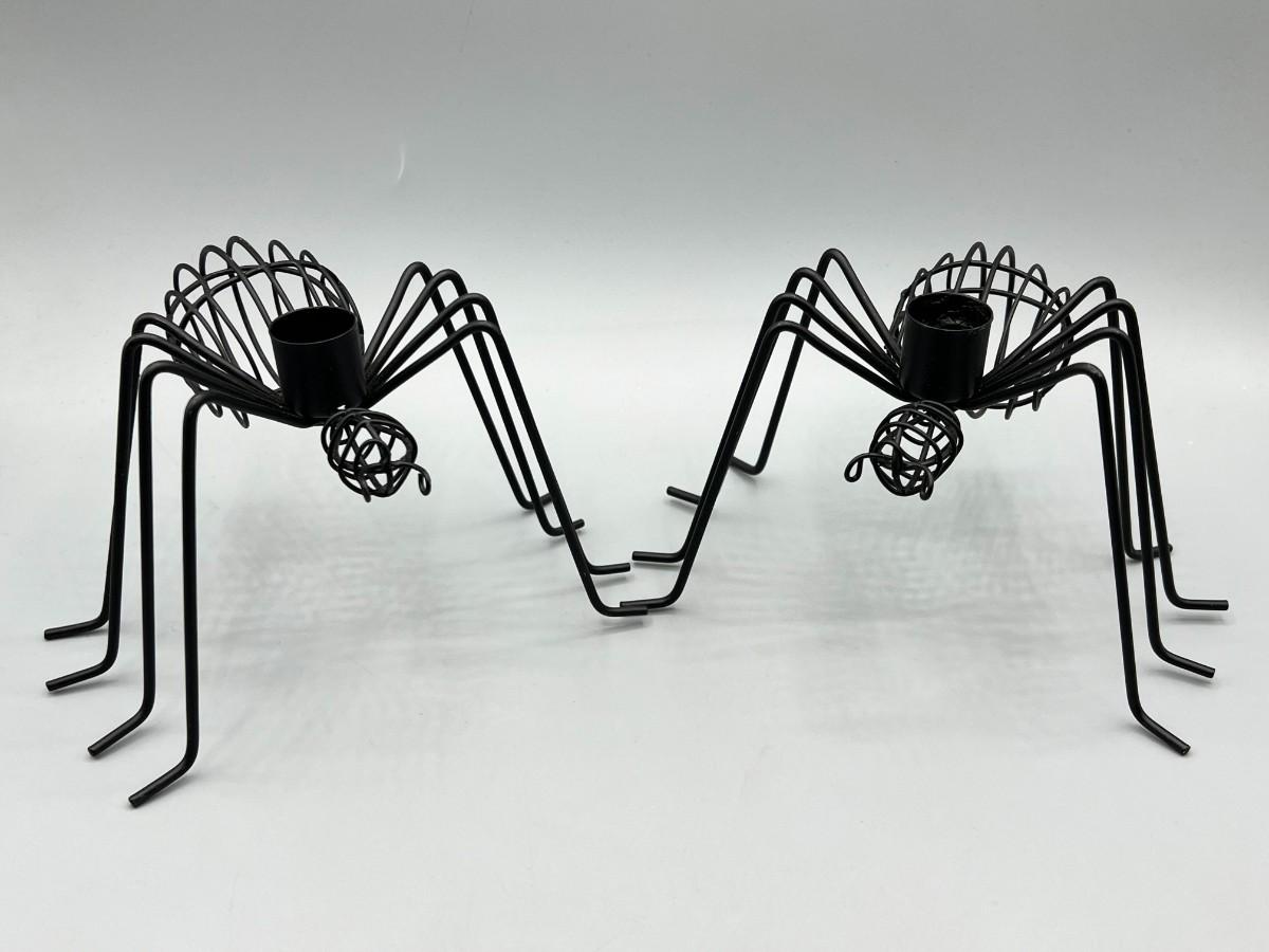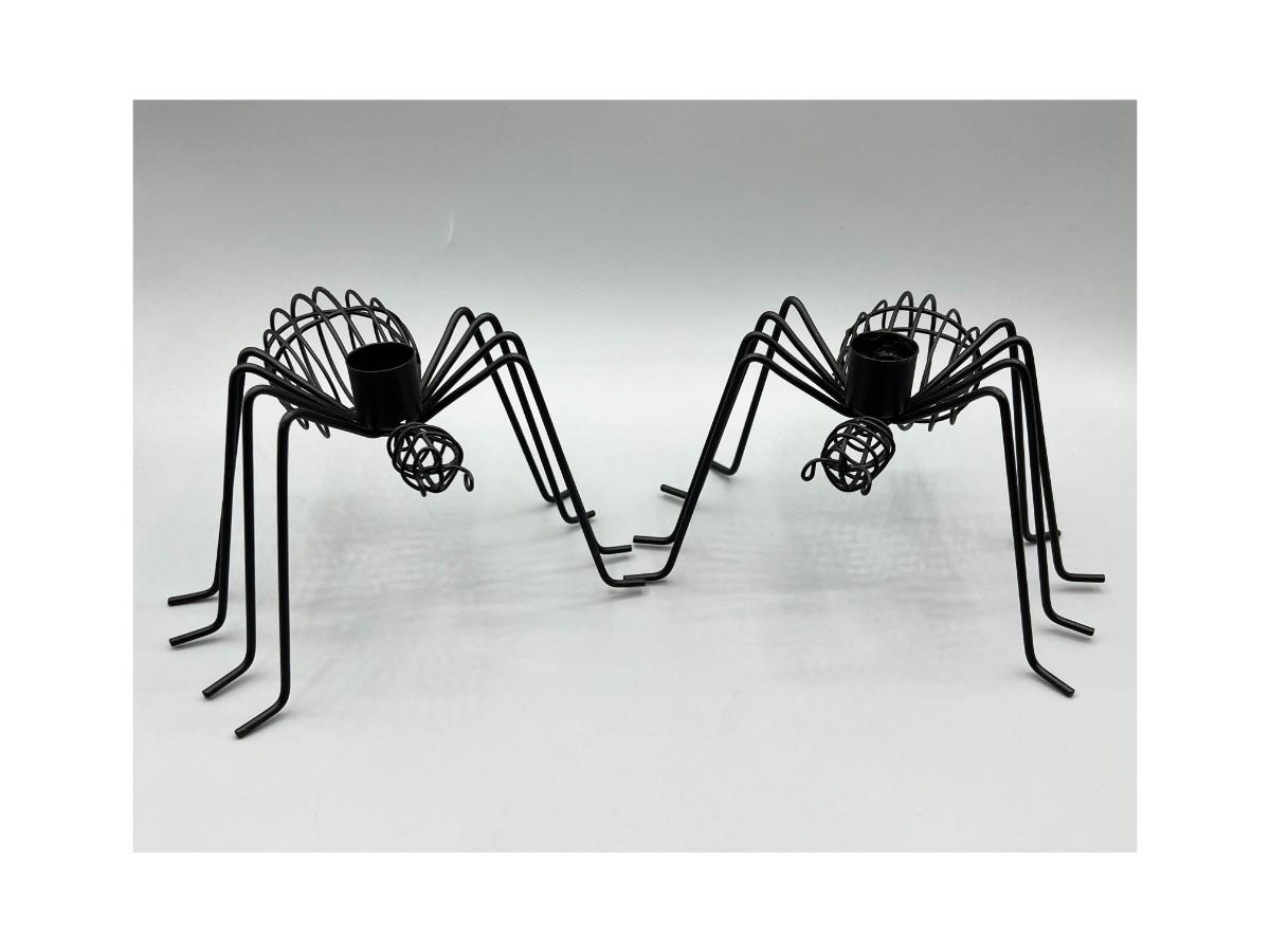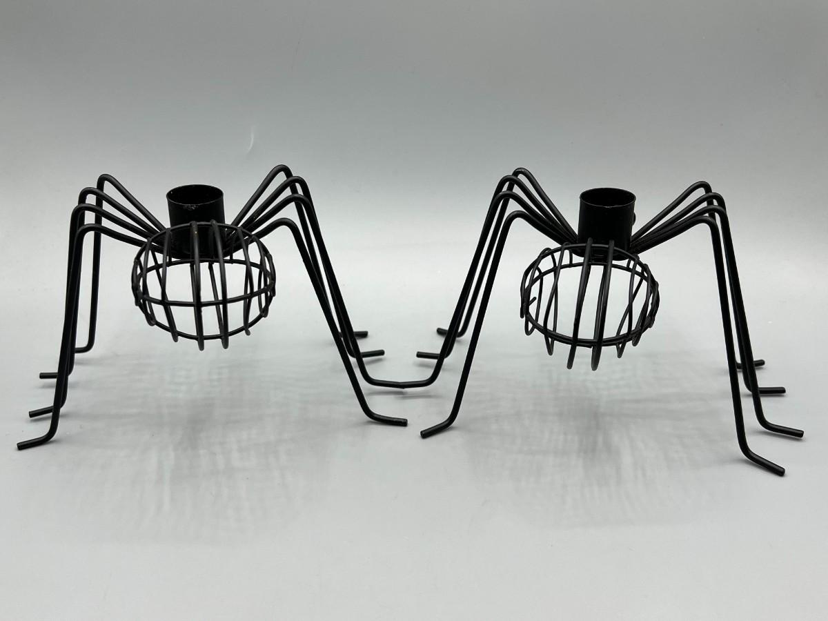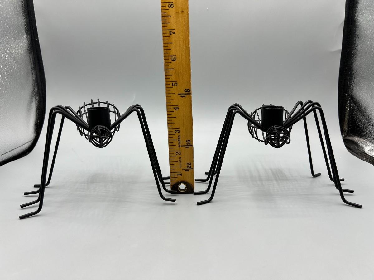 Pair of Black Metal Spider Small Candle Halloween Spooky Creepy Decor, there is no significant damage to the metal and is in good displayable condition. Check pictures for more details and for sizing.