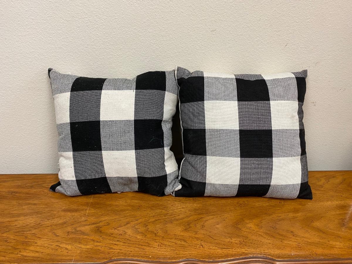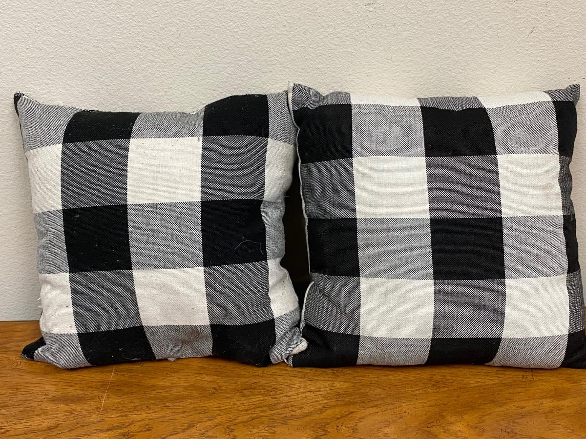 Pair of Black & White Checkered Plaid Gingham Throw Accent Pillows. Covers can be removed and washed. A few smudge spots here and there.