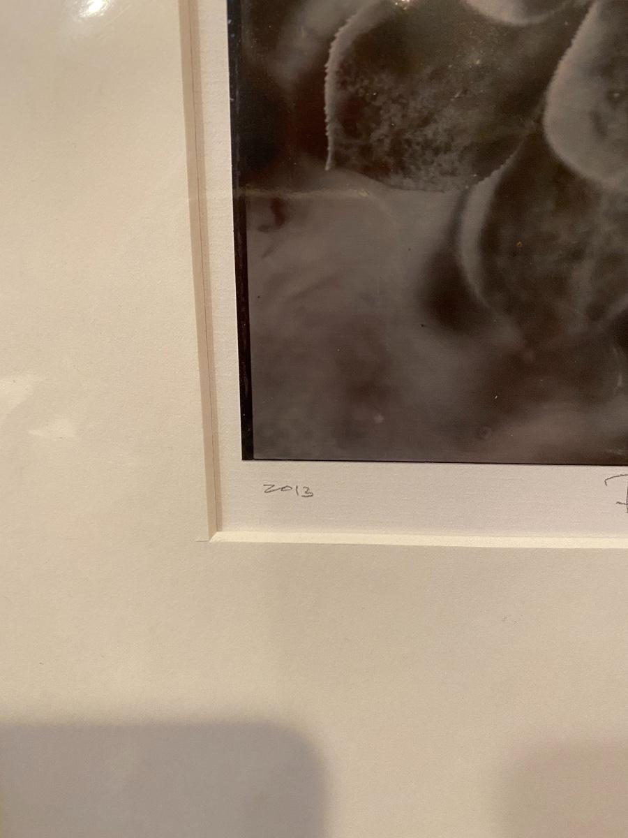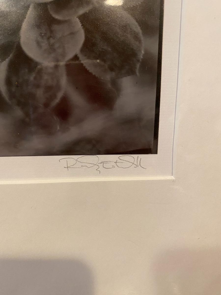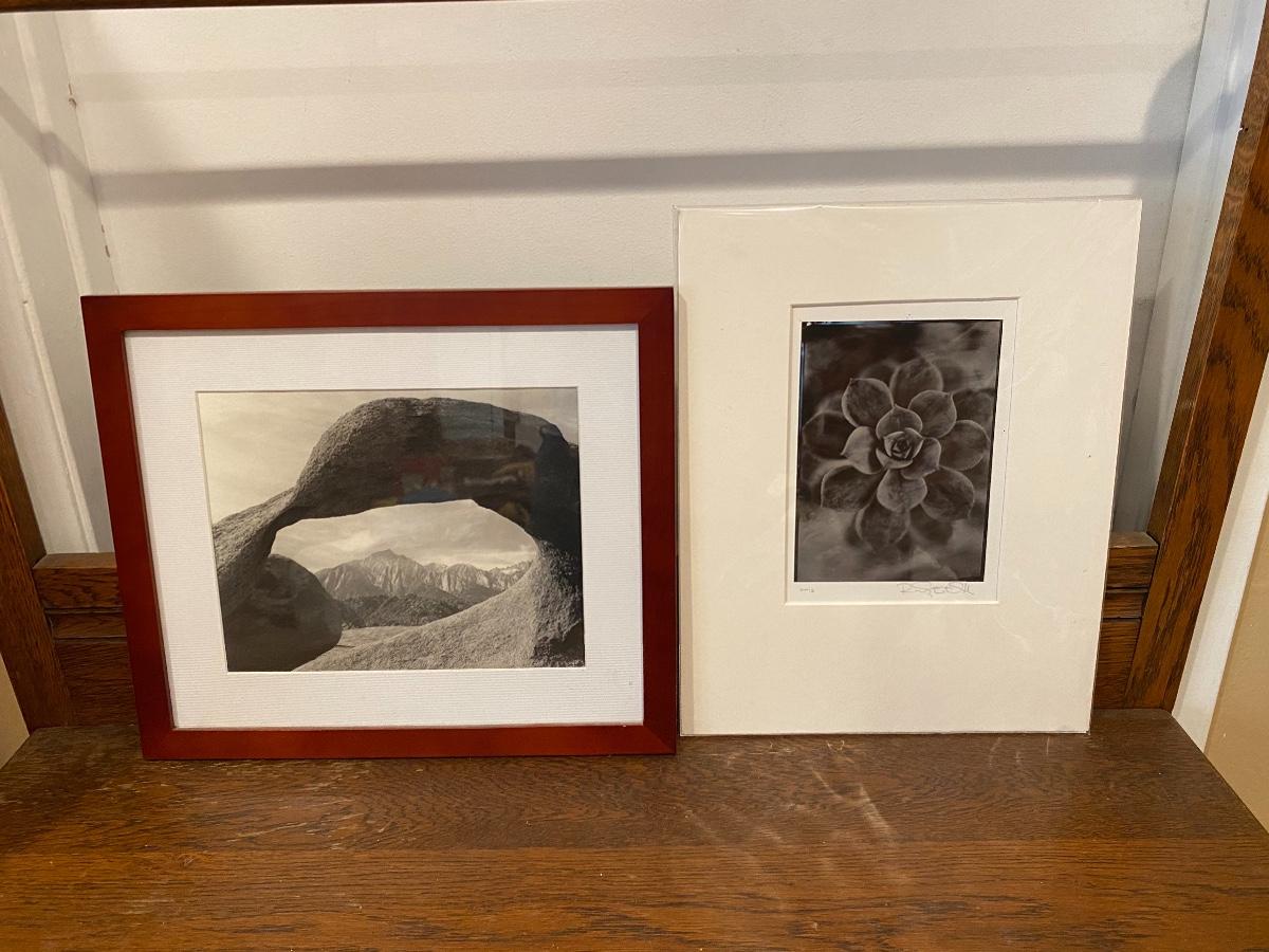 Pair of nature themed black and white photos. One framed. The unframed piece is signed and dated at the bottom.