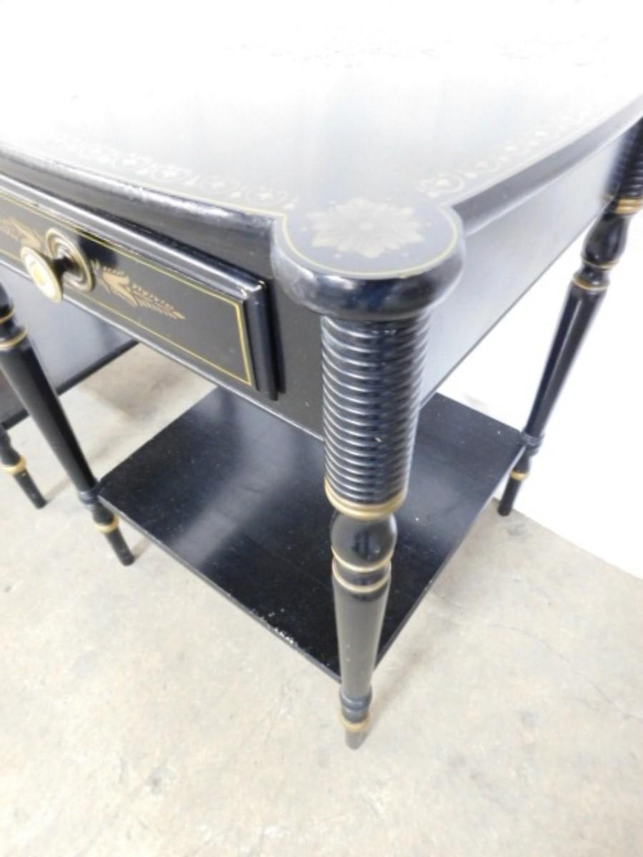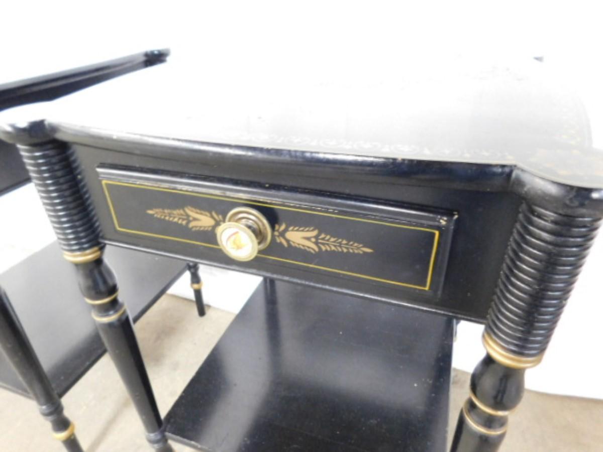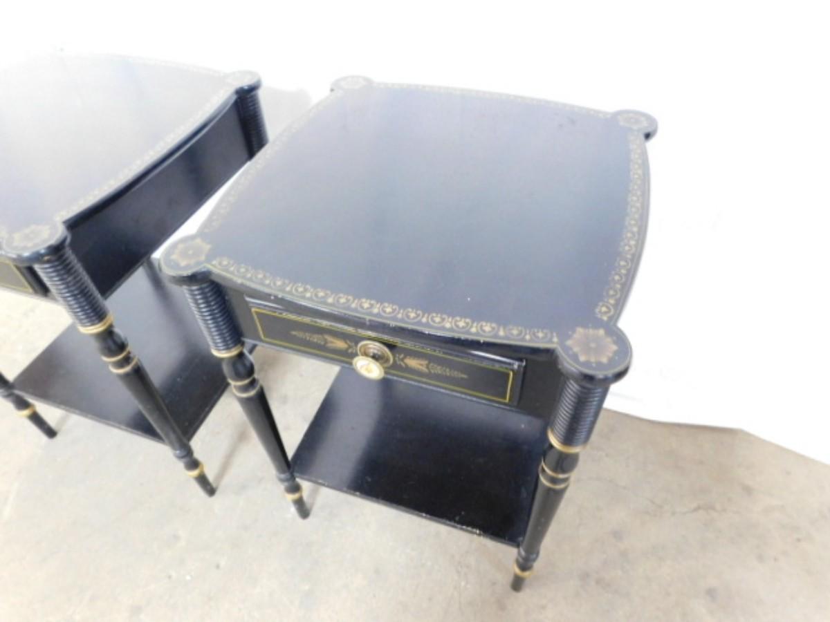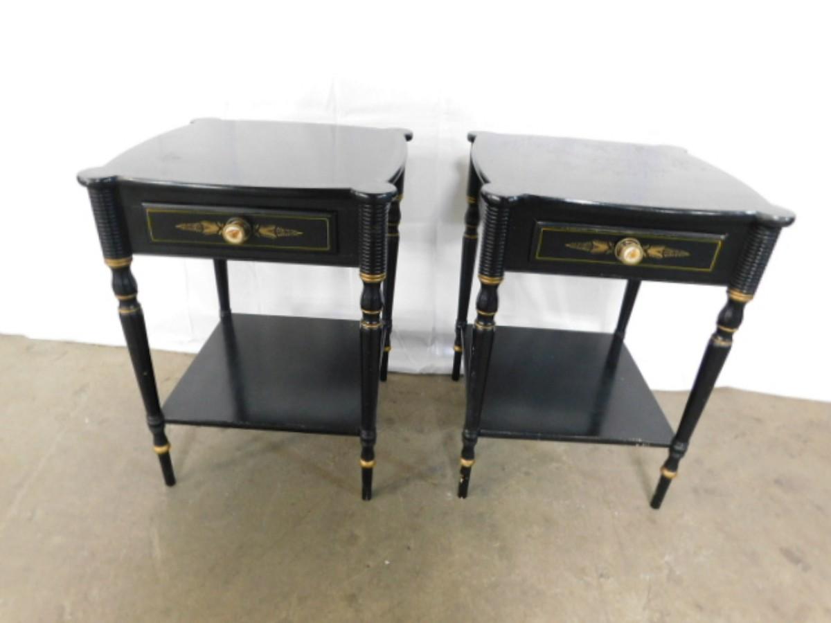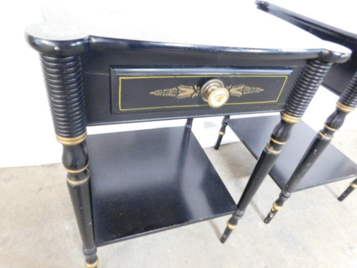 Pair of Black Wood Hitchcock Design Side Tables