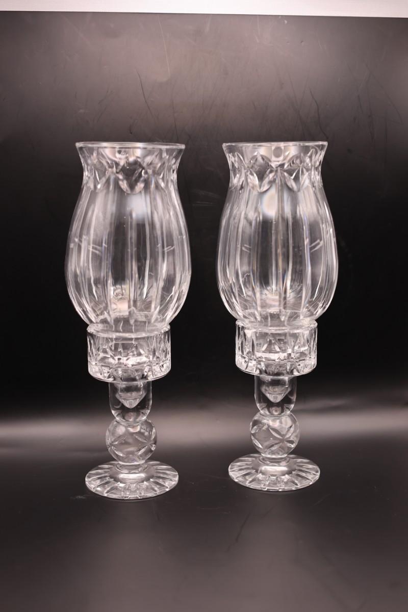 Pair of Block Crystal Hurricane Candle Holders