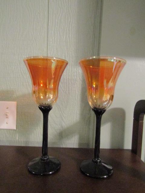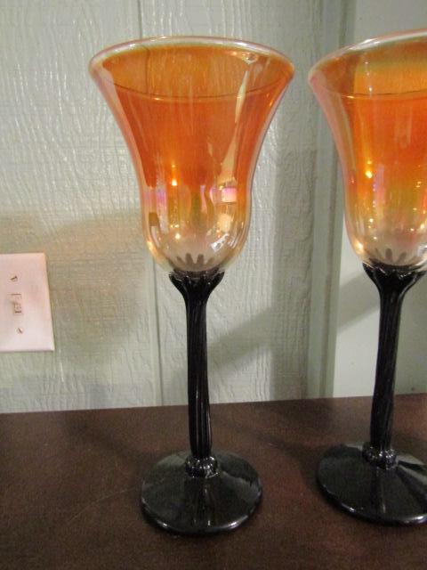 Pair of Blown Glass Wine Goblets- Signed by Artist