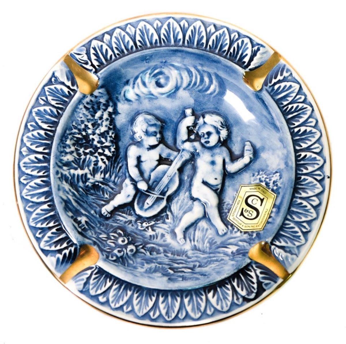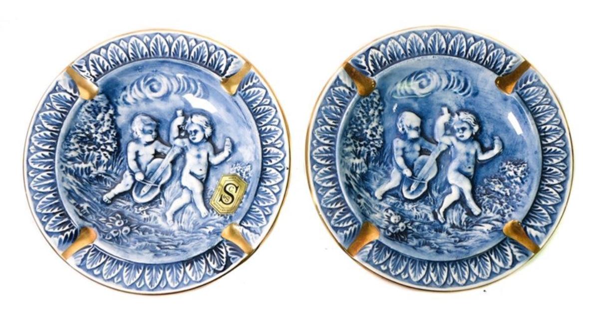 Pair of Blue & Gold Trim Cherub Capodimonte Ashtrays