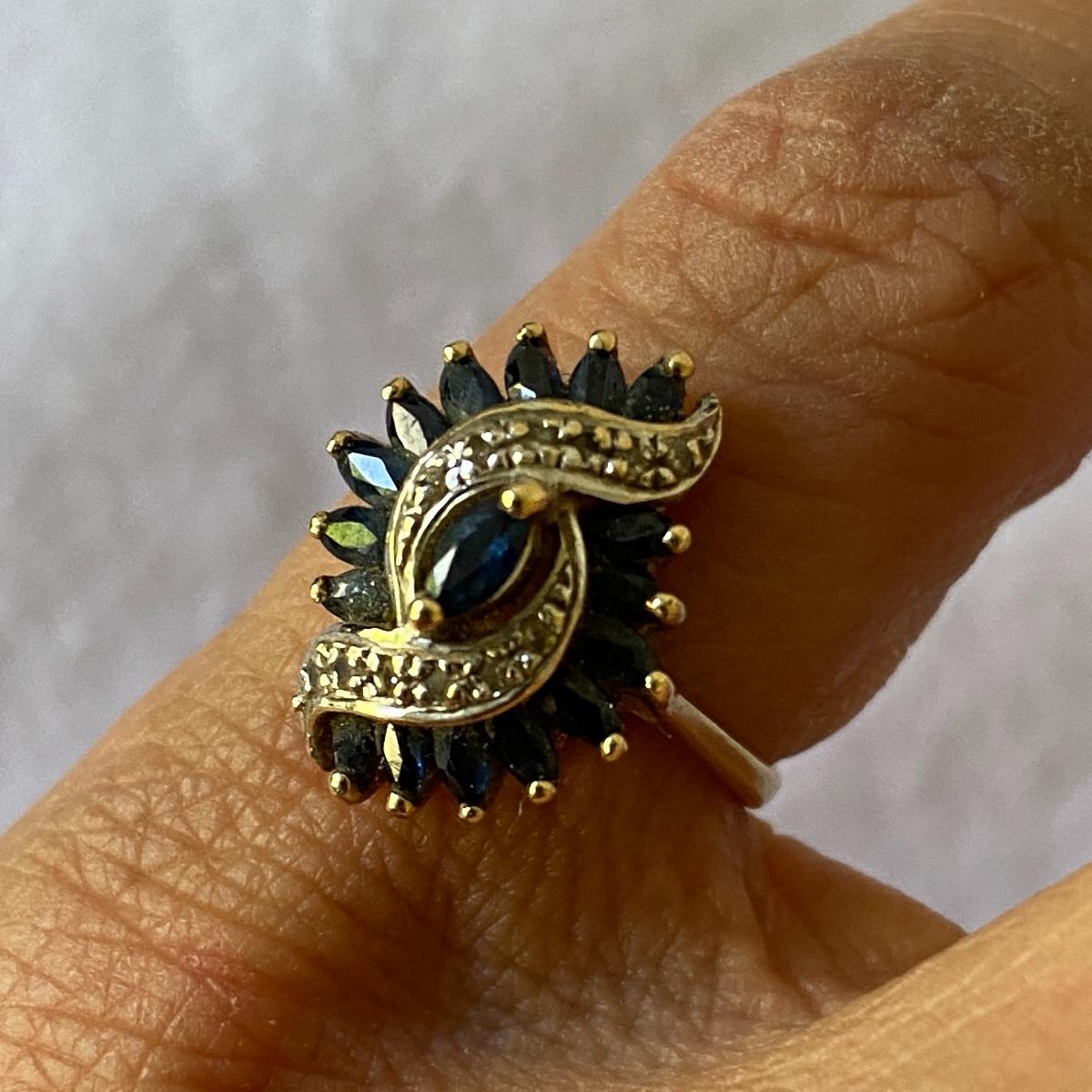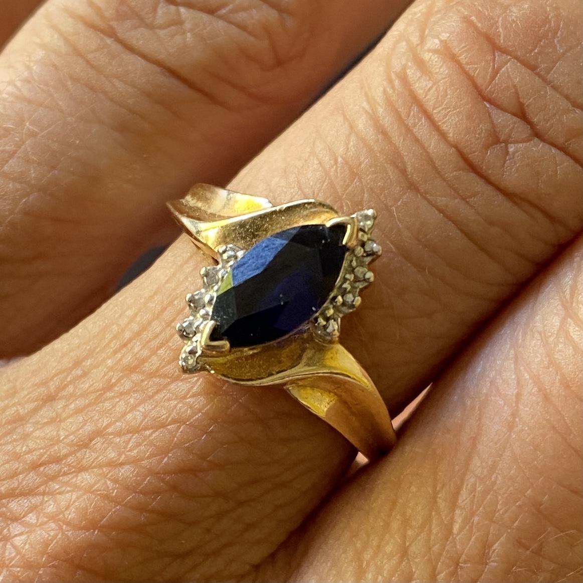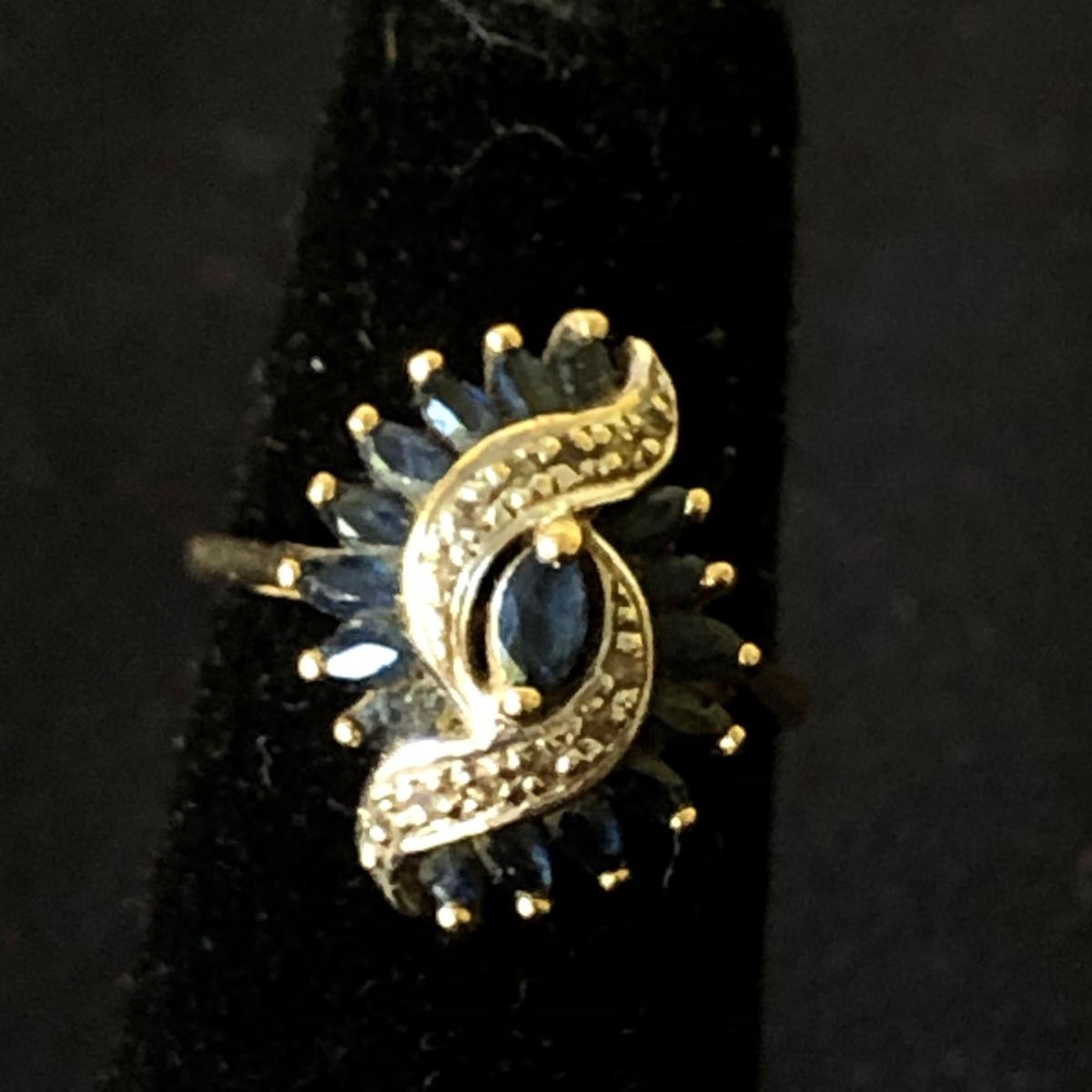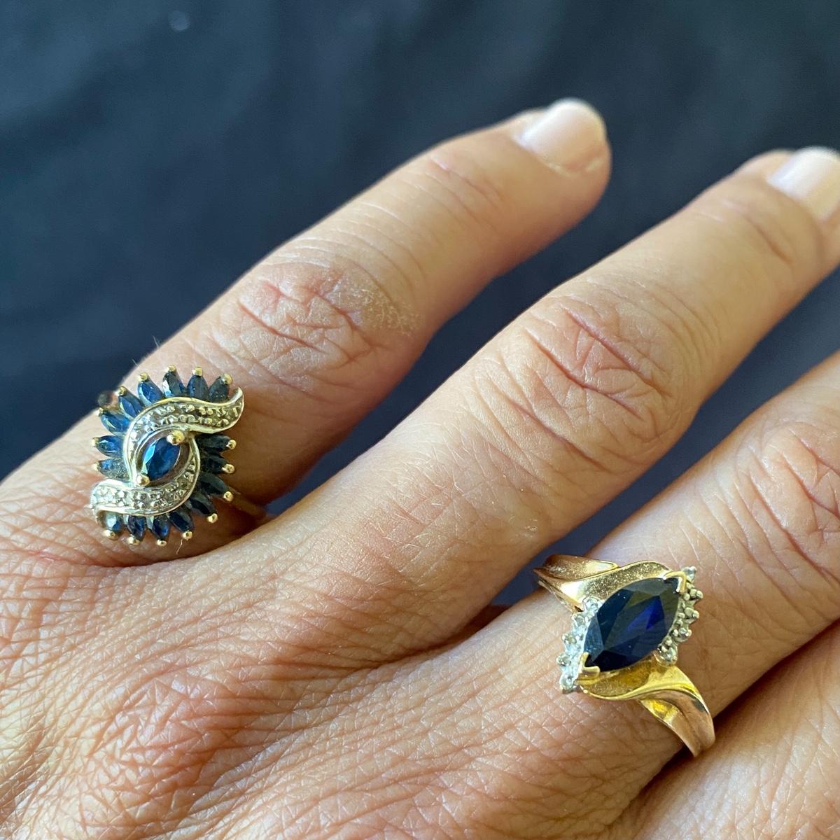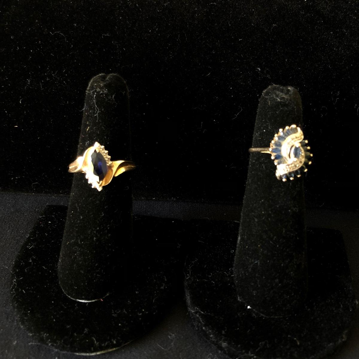 Lot includes one blue sapphire ring marked 10KP and one blue sapphire ring with a illegible KT marking, see pictures.