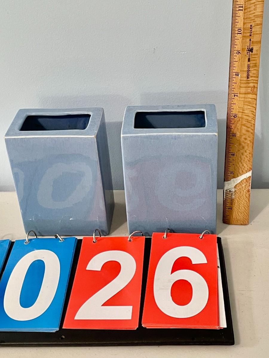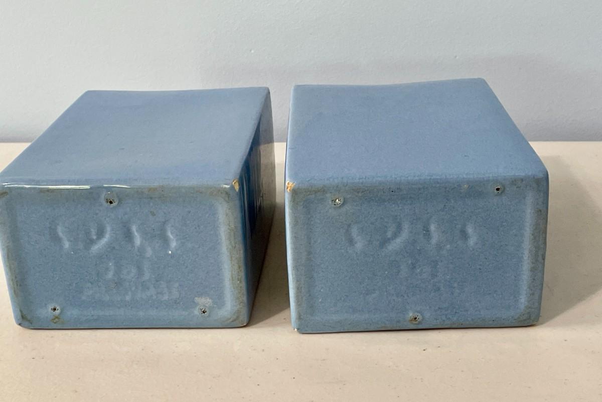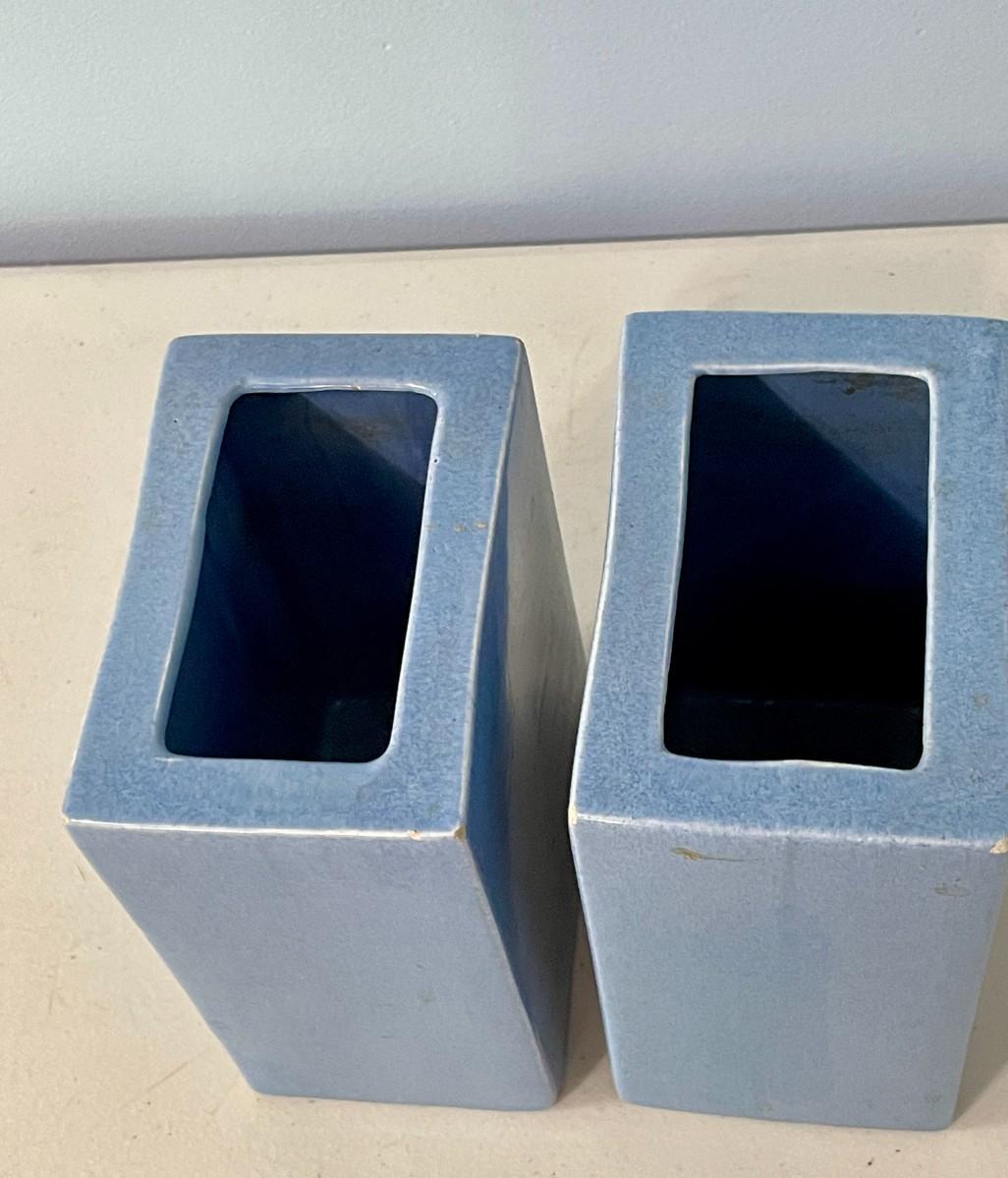 Pair of blue vintage Metlox "pillowvases"