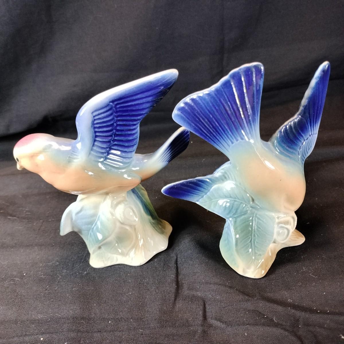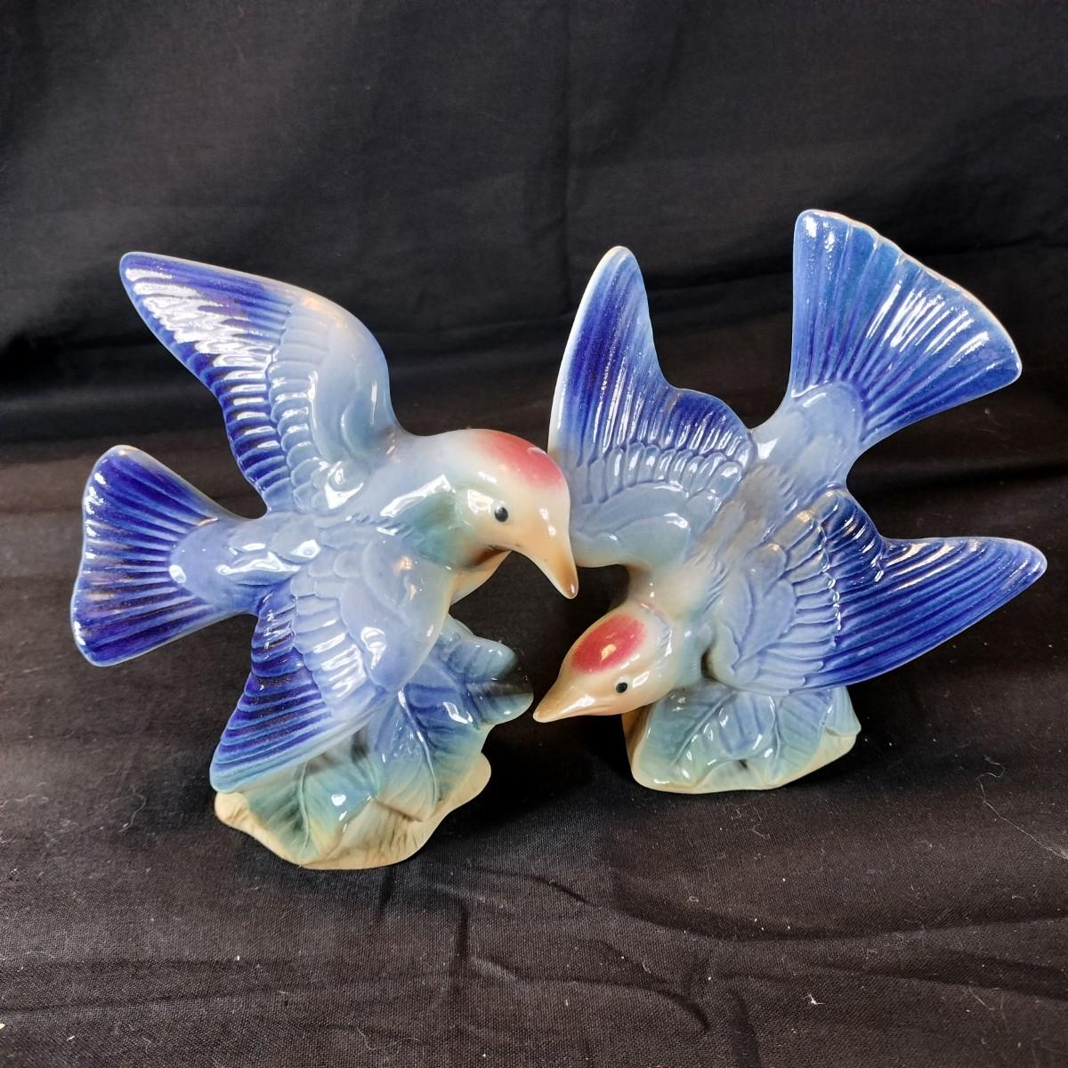 This auction lot is for a Pair of Bluebirds. This is a sweet pair of china blue birds - no marks, maker unknown. They are in very good condition and appear to be from the 50's. Measures about 5-inches wide x 5-inches tall. NIce set!
