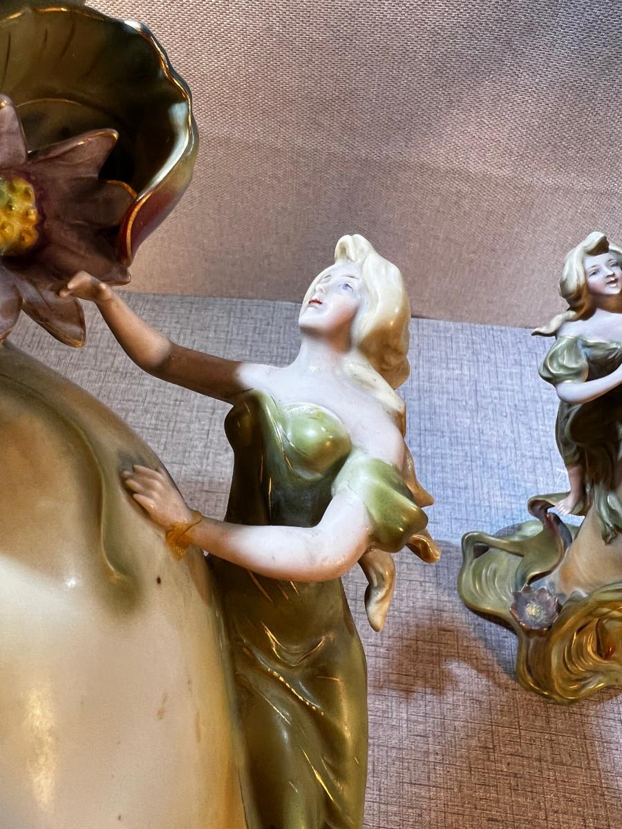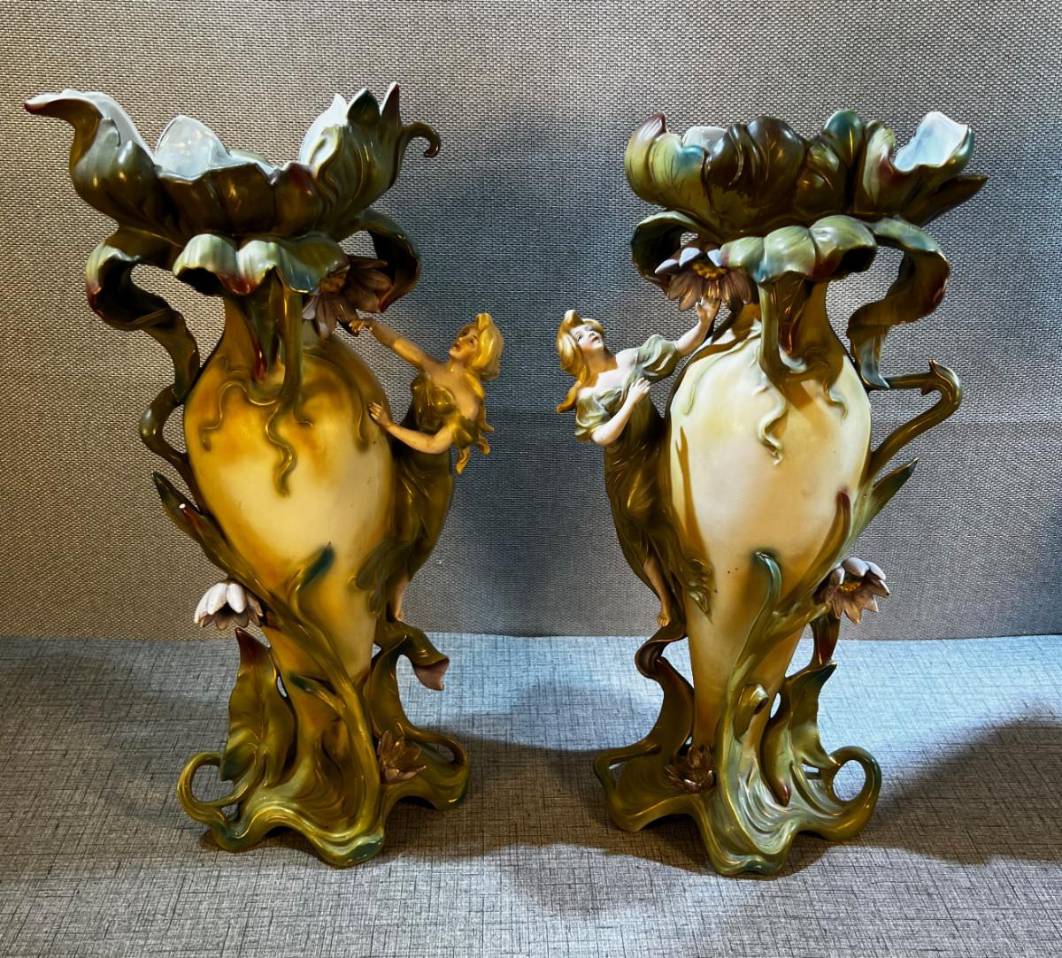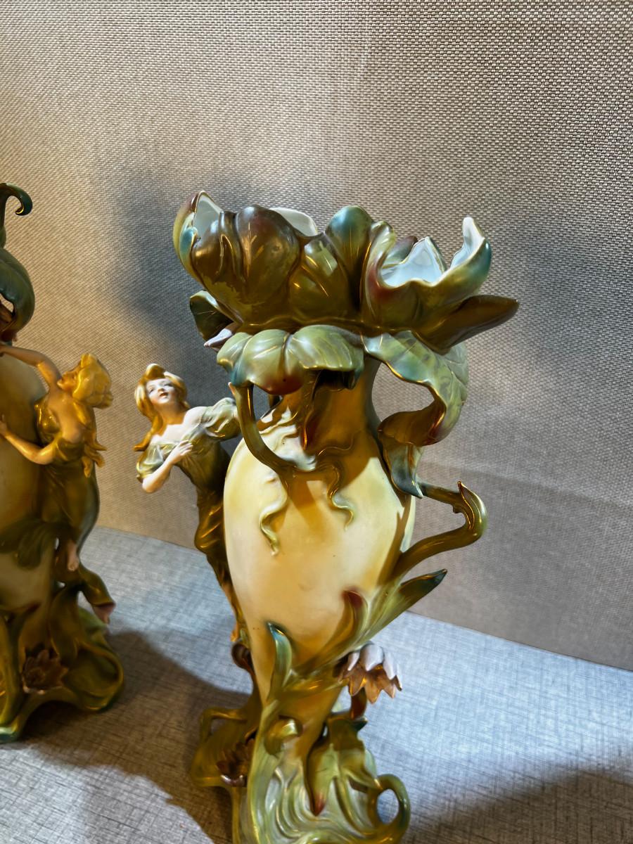 Pair of Bohemian Art Nouveau Porcelain Vases 16" tall