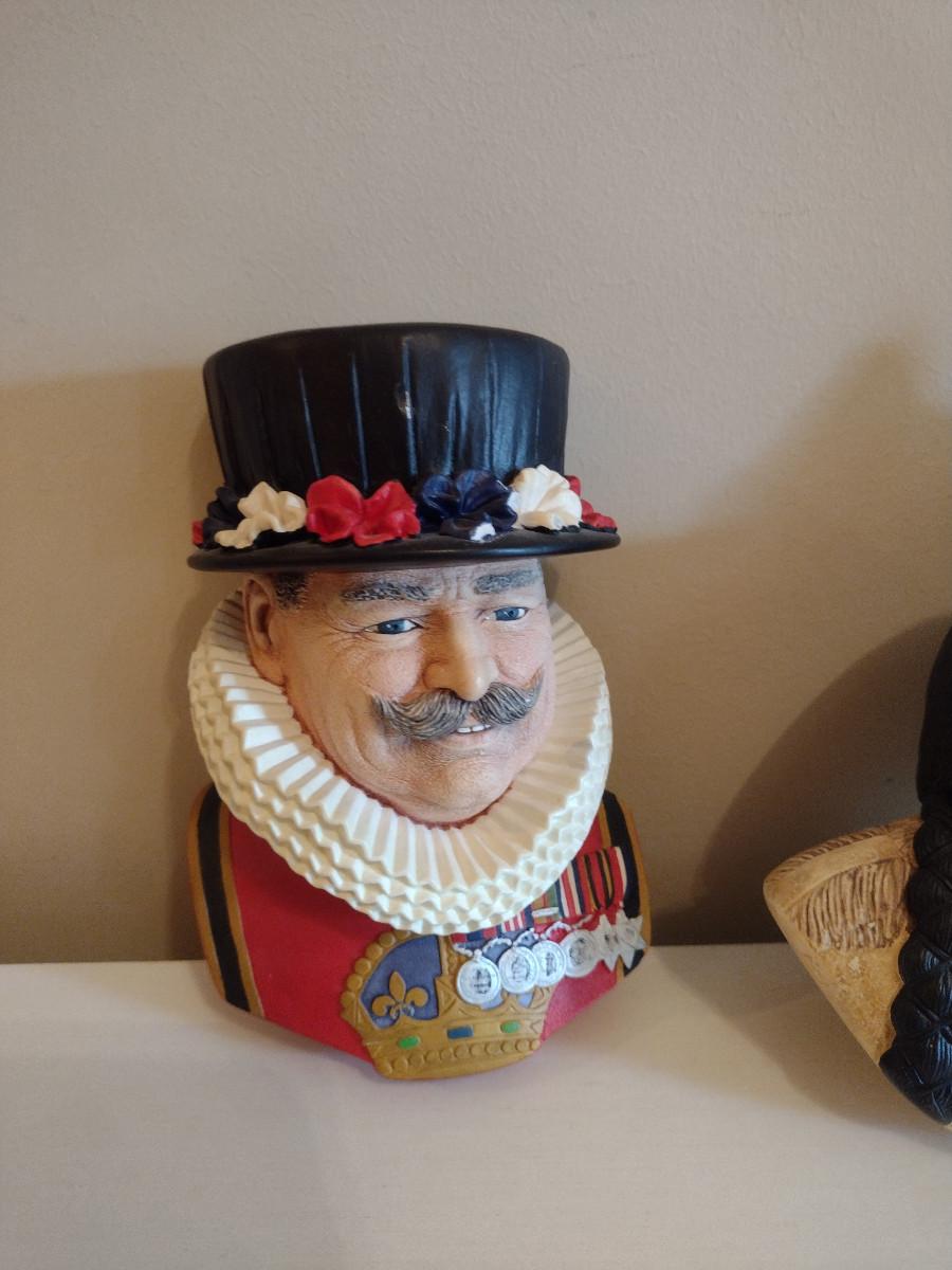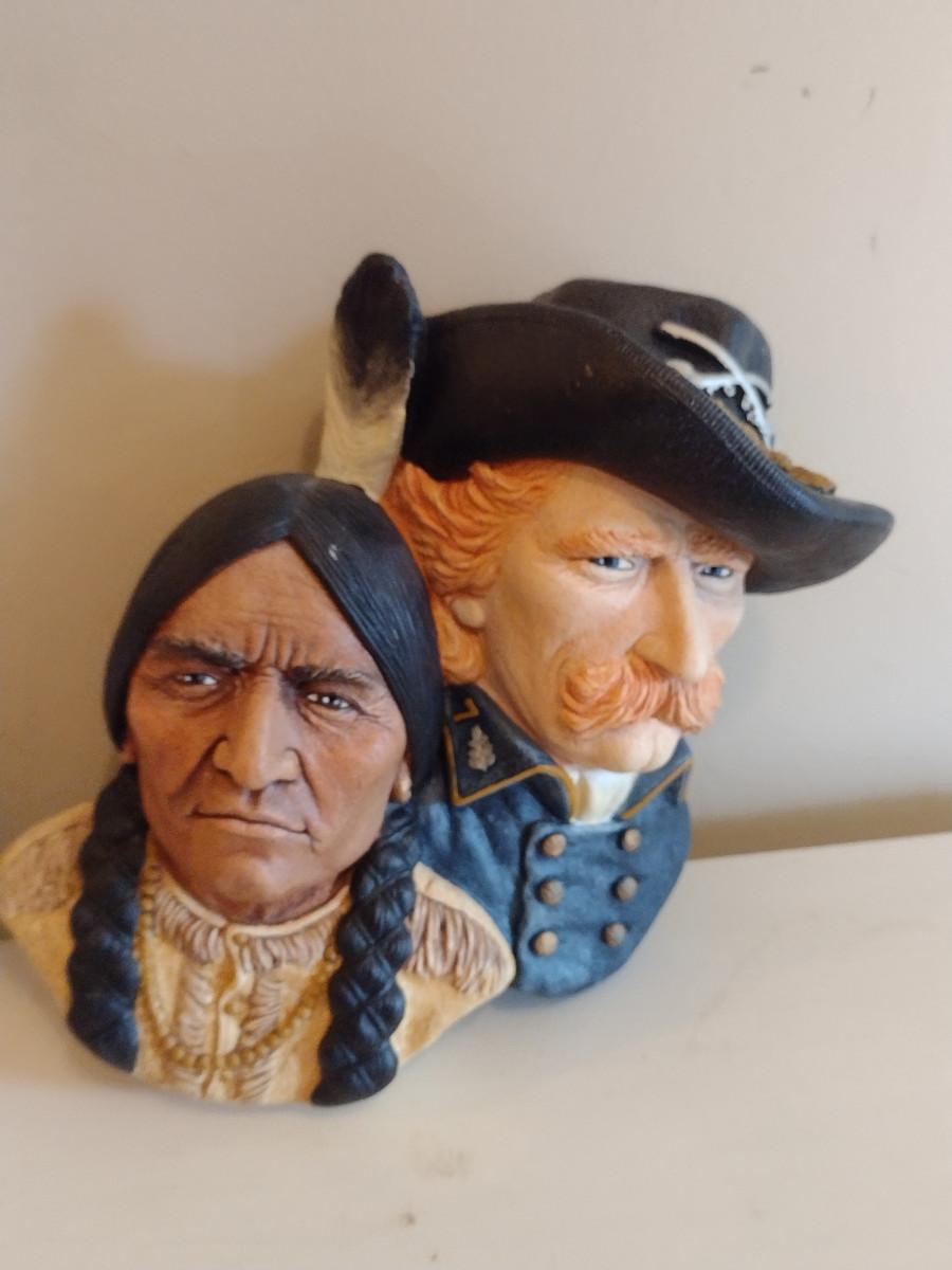 Pair of Bossons Chalkware Wall Decor- British Beefeater and Chief Sitting Bull with Colonel Custer. Please see all pictures- beefeater has chipped area on front of hat.
