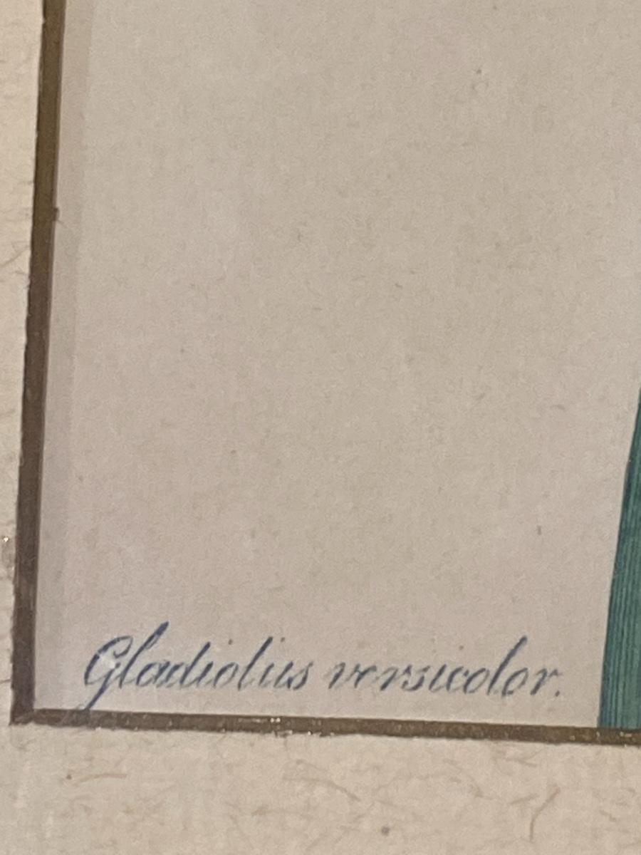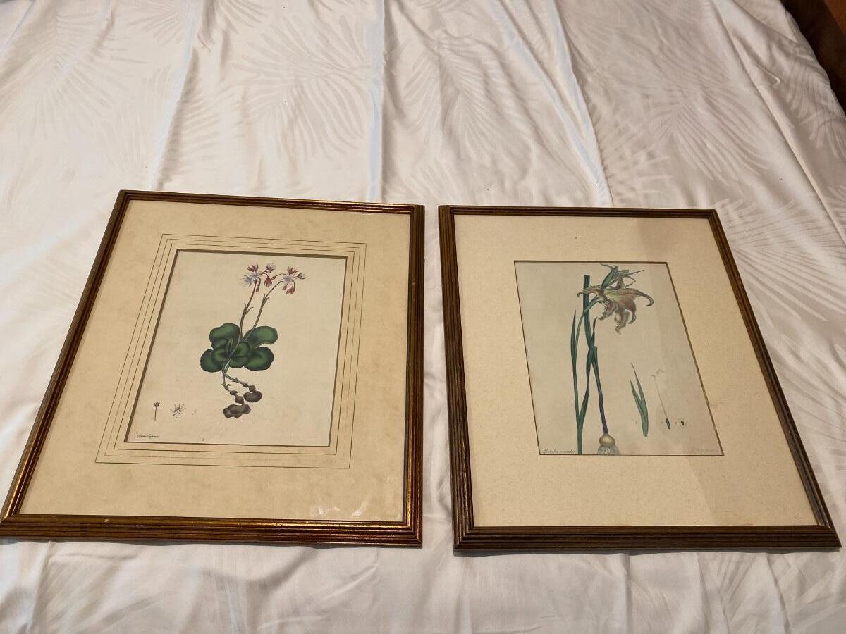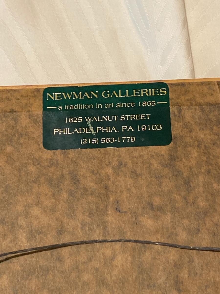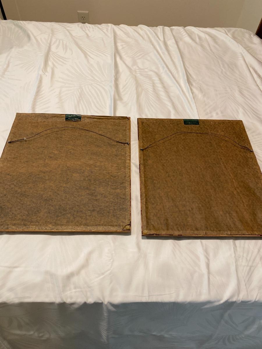 Both purchased from Newman Galleries. They each measure 17"h x 15"w in gilt frames.