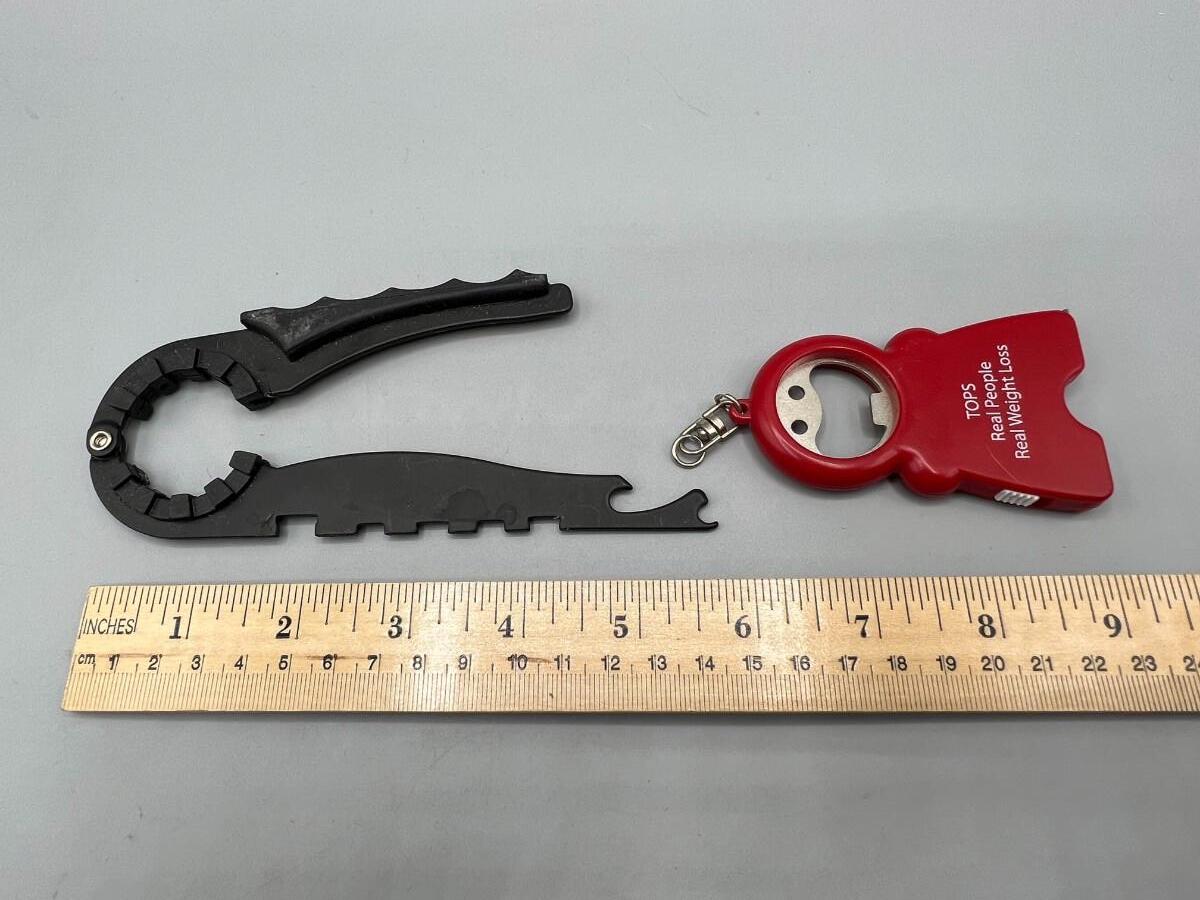 Pair of Bottle Openers. One for caps and one grips for twist off.