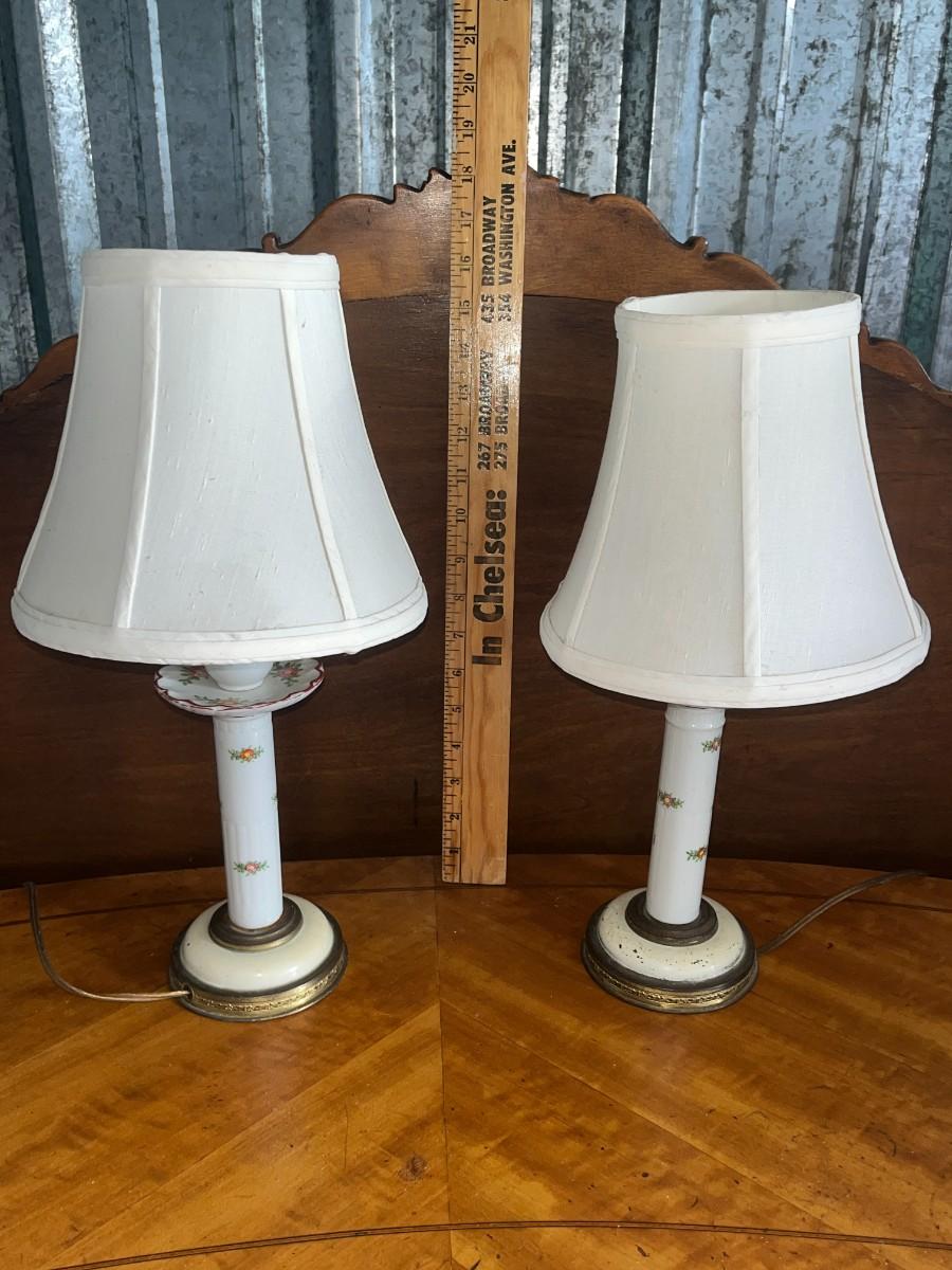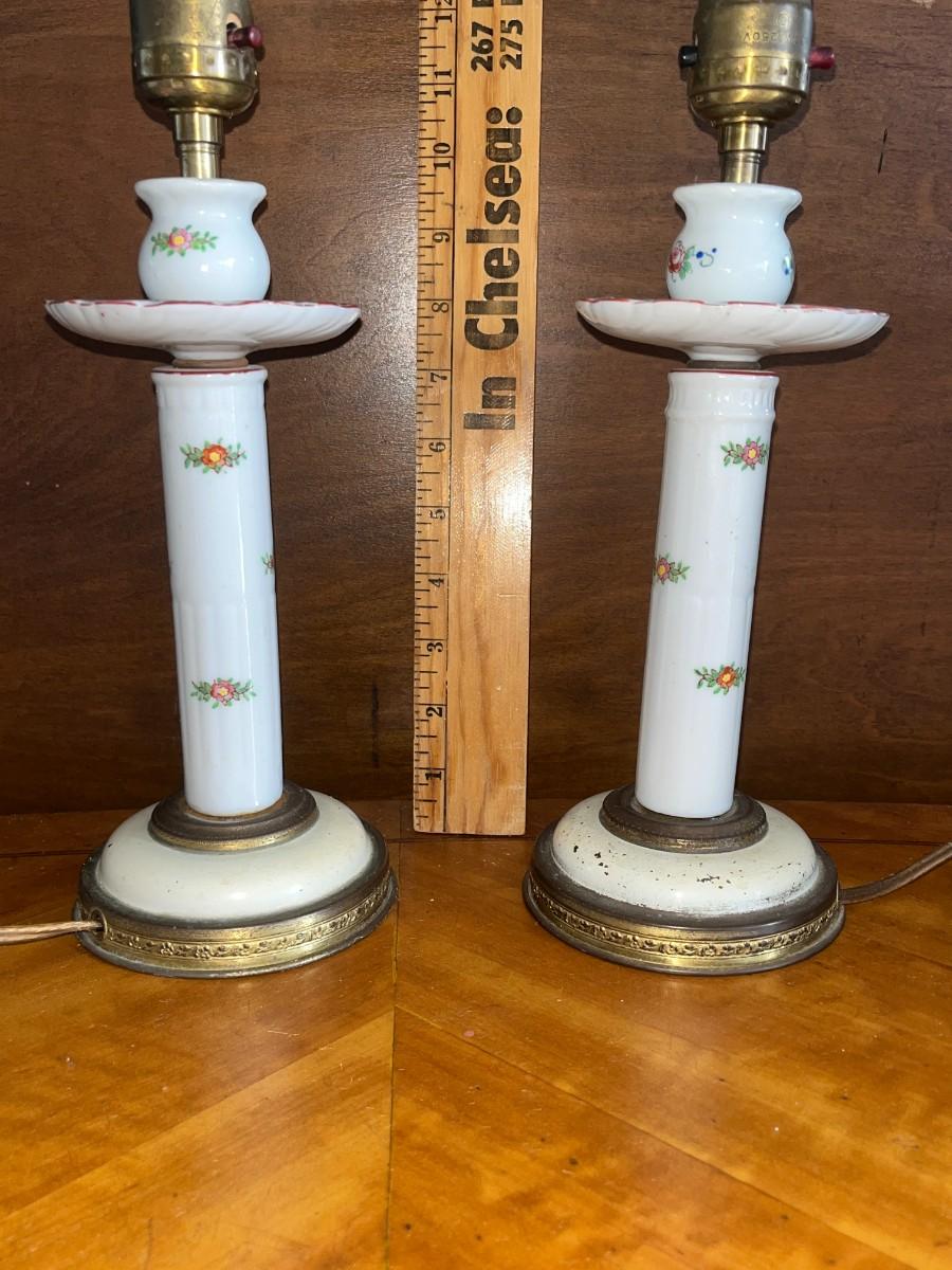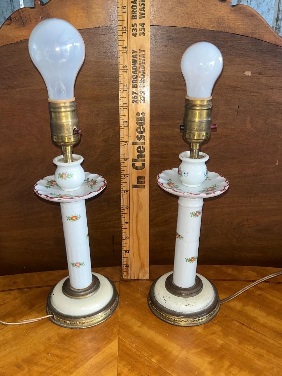 Brass and porcelain intact. Good working condition. Nice size for vanity /dresser.