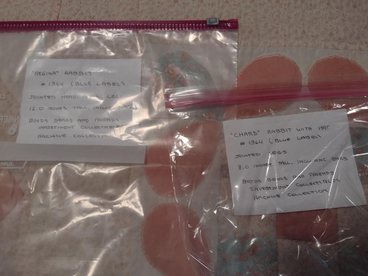 Pair of Boyd's Bears Investment Collection 'Regina' and 'Chard' Rabbits with Tags