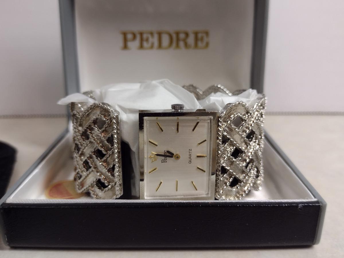 Pair of Bracelet Watches- Pedre and Parker (#34). Items appear to be in new condition. Neither are in running condition- may need new batteries because of age.