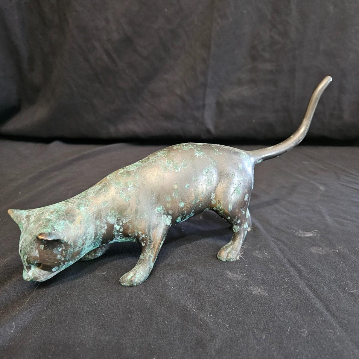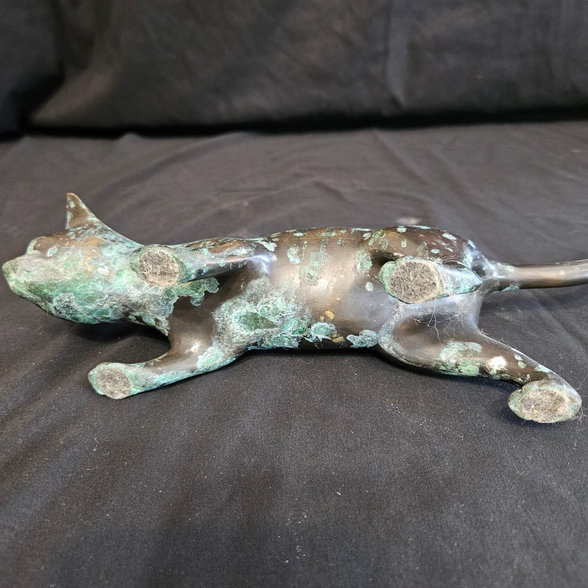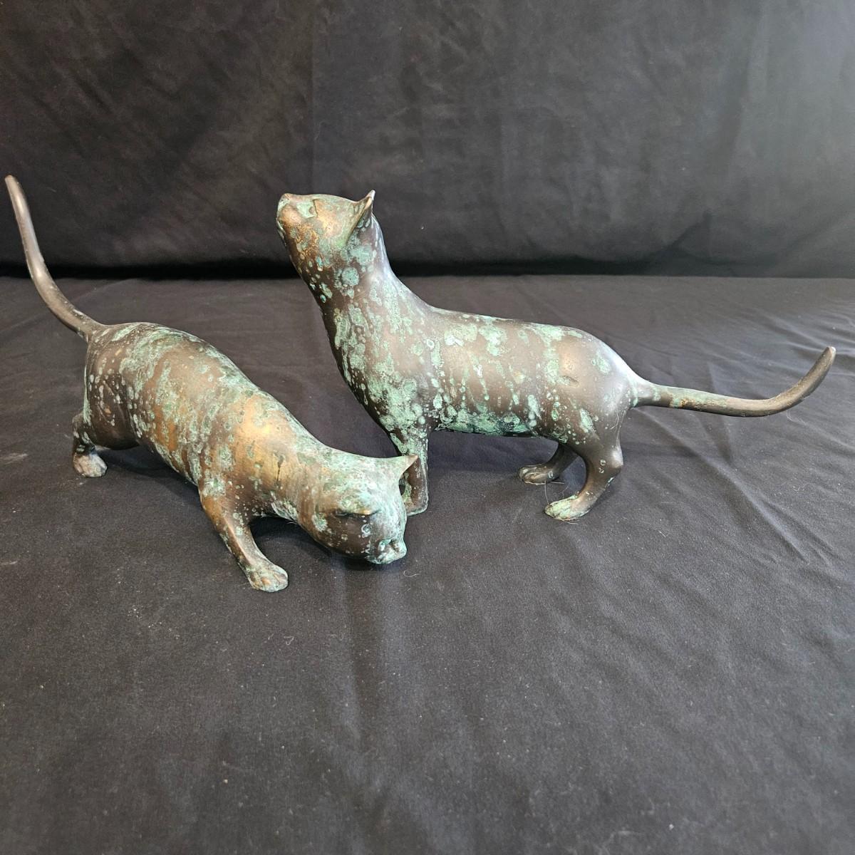 A pair of bronze cats that have a lovely patina to them. They measure approximately 12" x 2" x 7"H. Shipping available