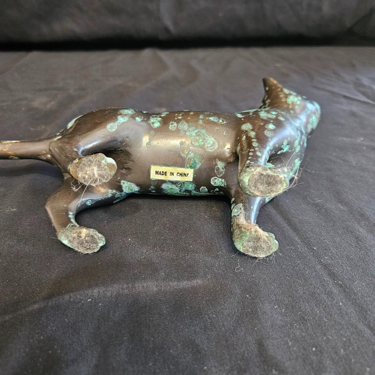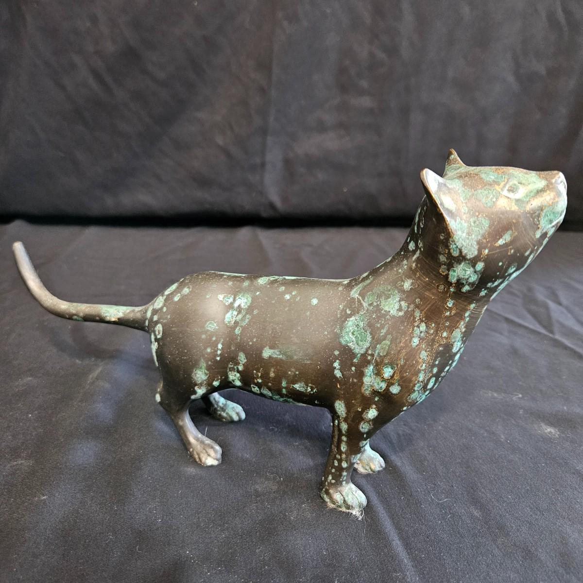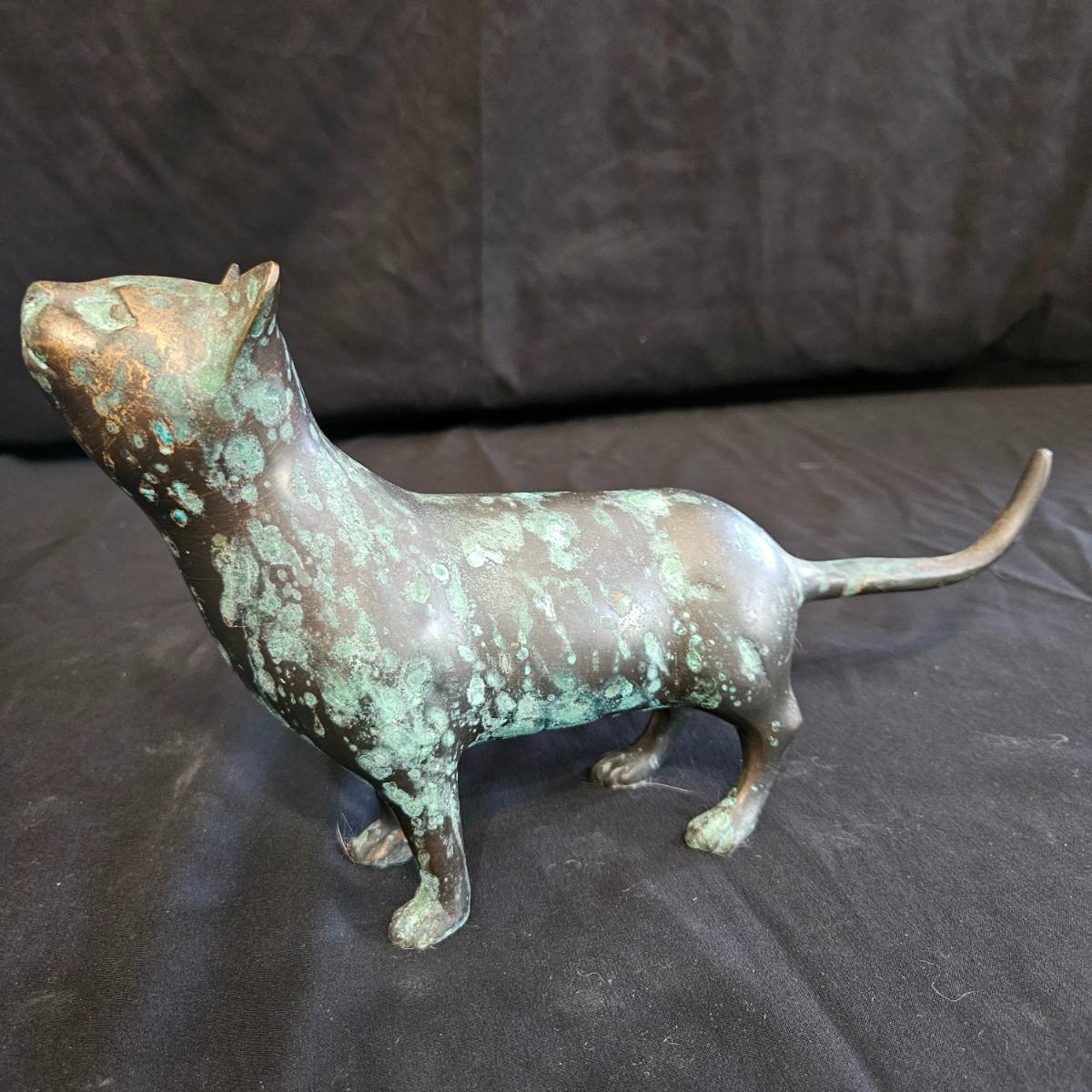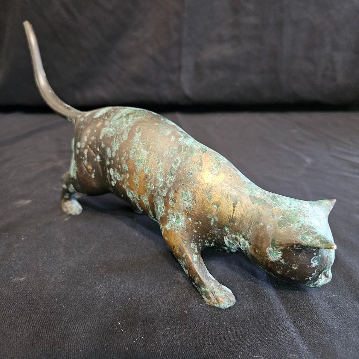 A pair of bronze cats that have a lovely patina to them. They measure approximately 12" x 2" x 7"H. Shipping available