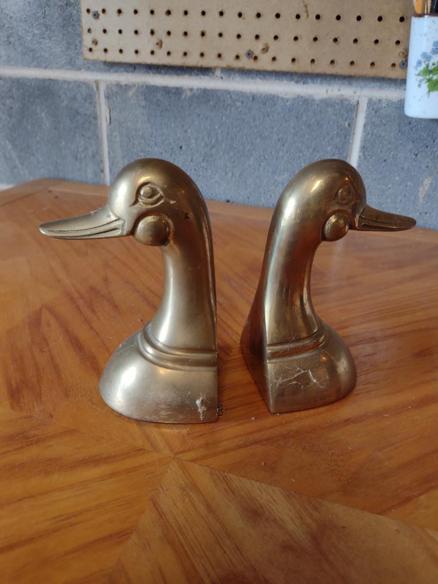 Pair of Brass Duck Bookends- Approx 6 3/4" Tall