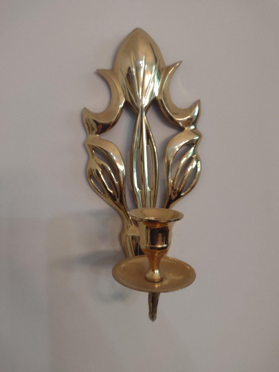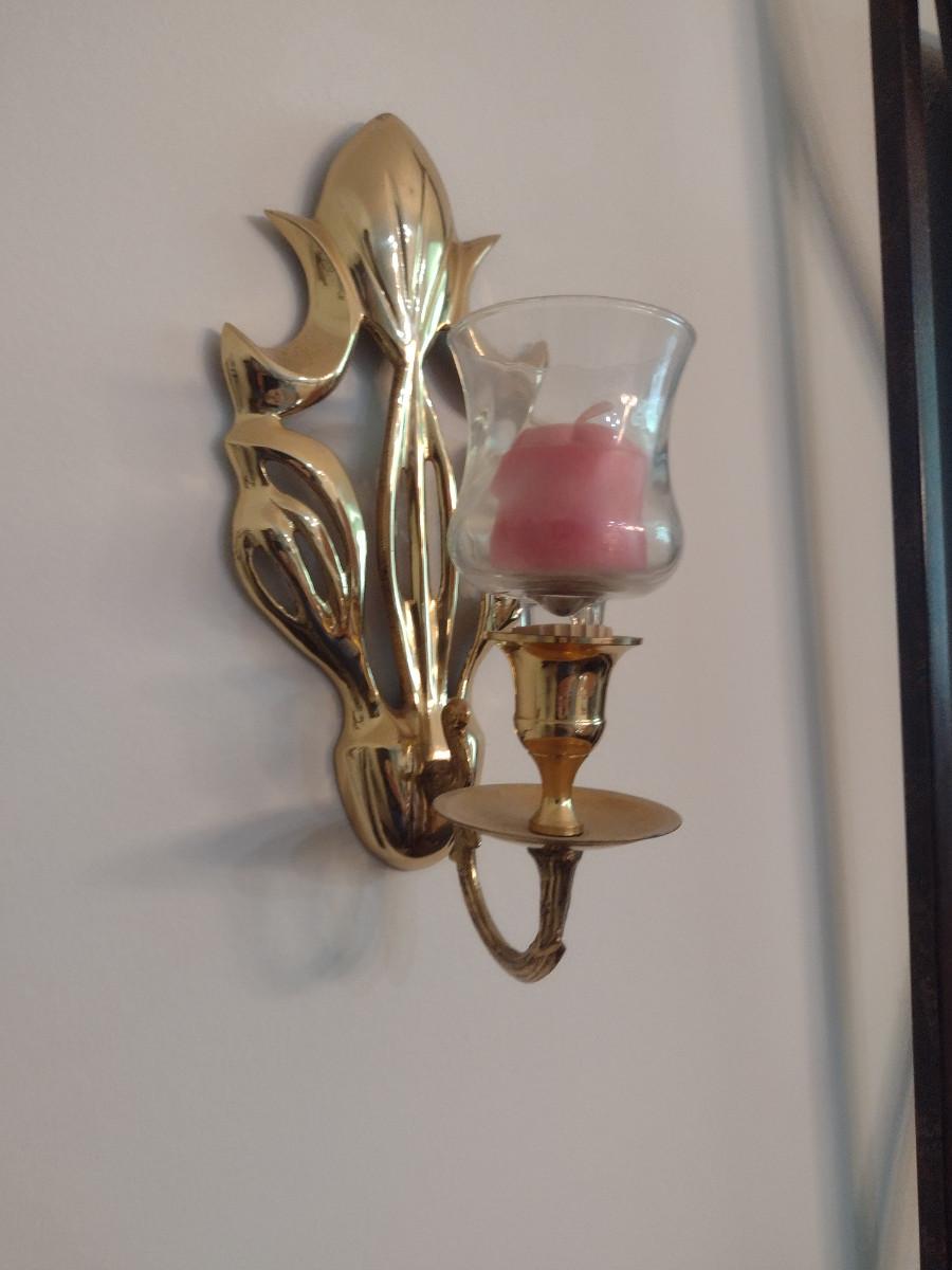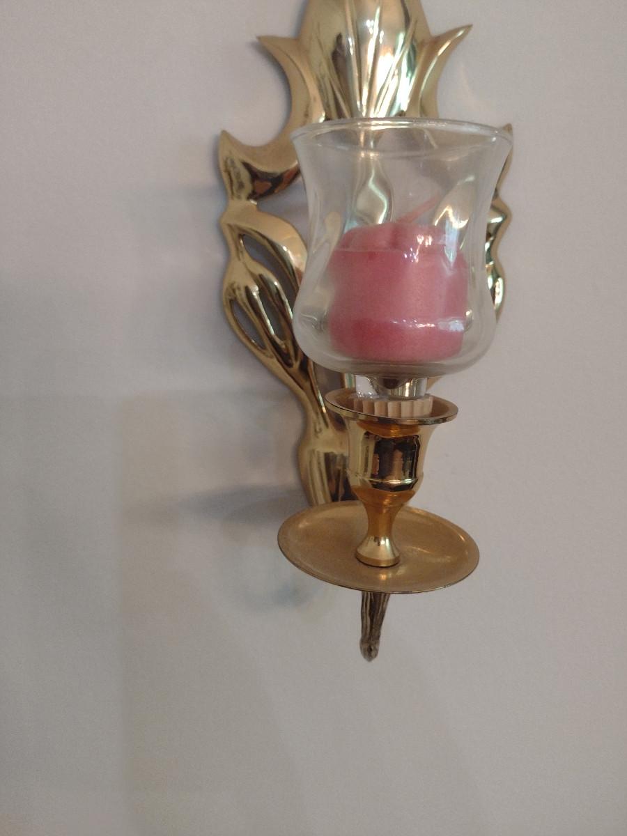 Pair of Brass Wall Sconce Candle Holders