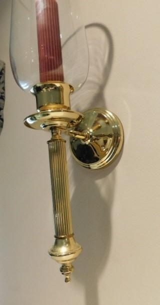Pair of Brass Wall Sconce Candle Lights with Glass Bell Chimney 18" wax candle included