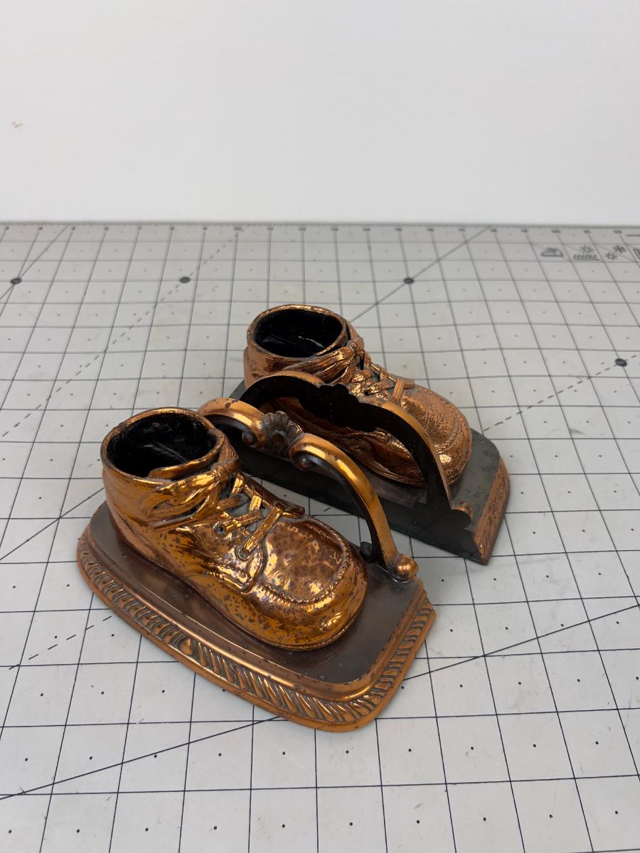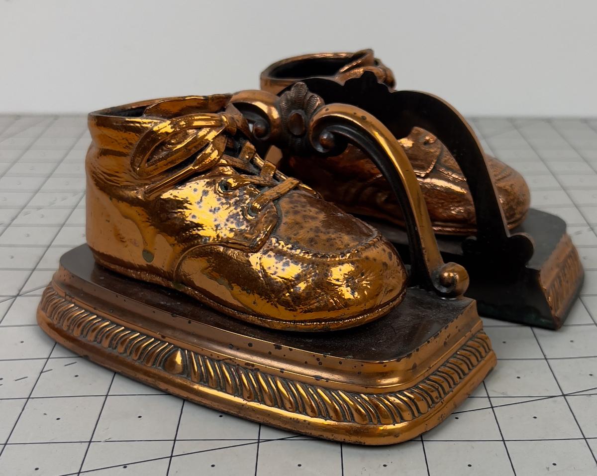 Pair of Bronze Baby Shoes BOOK ENDS, VINTAGE