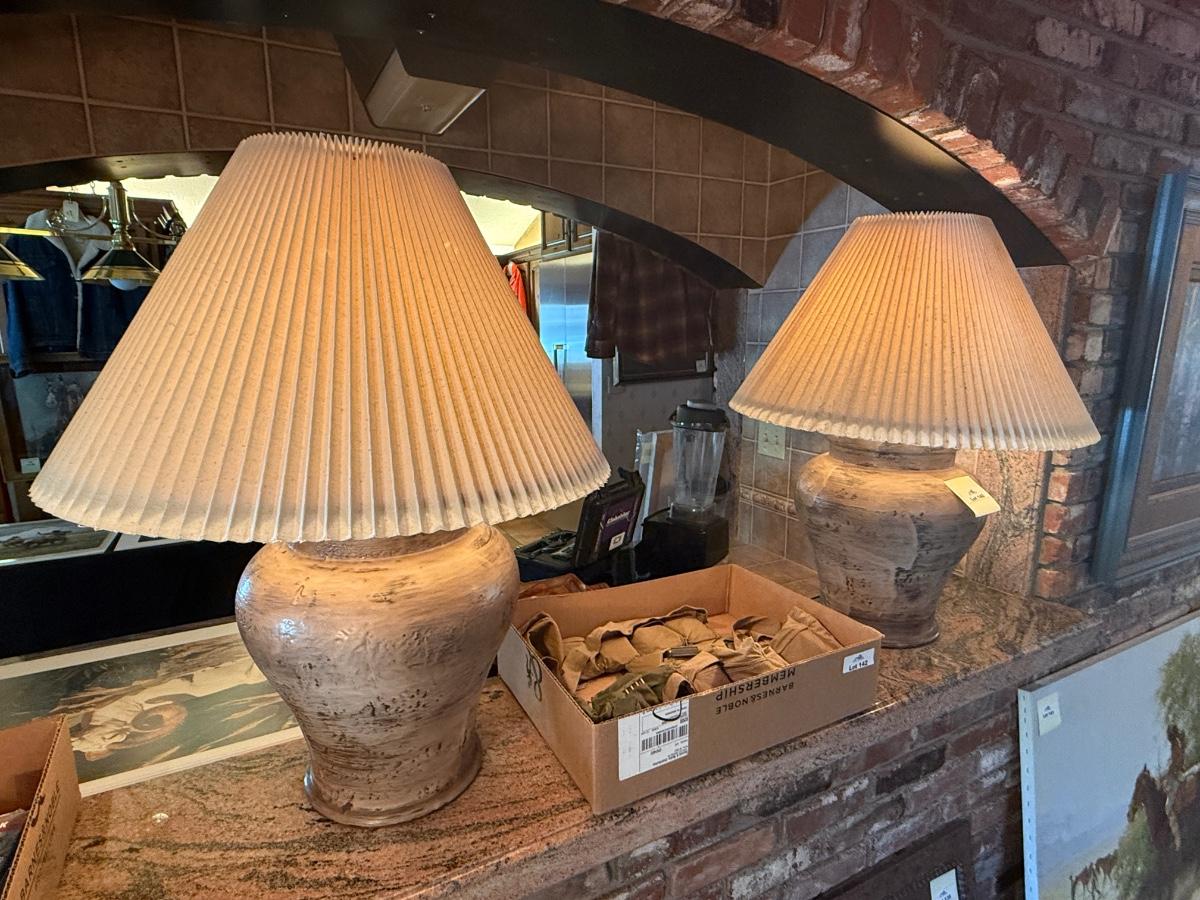 Pair of Wide Brown Ceramic working Table Lamps - Nice