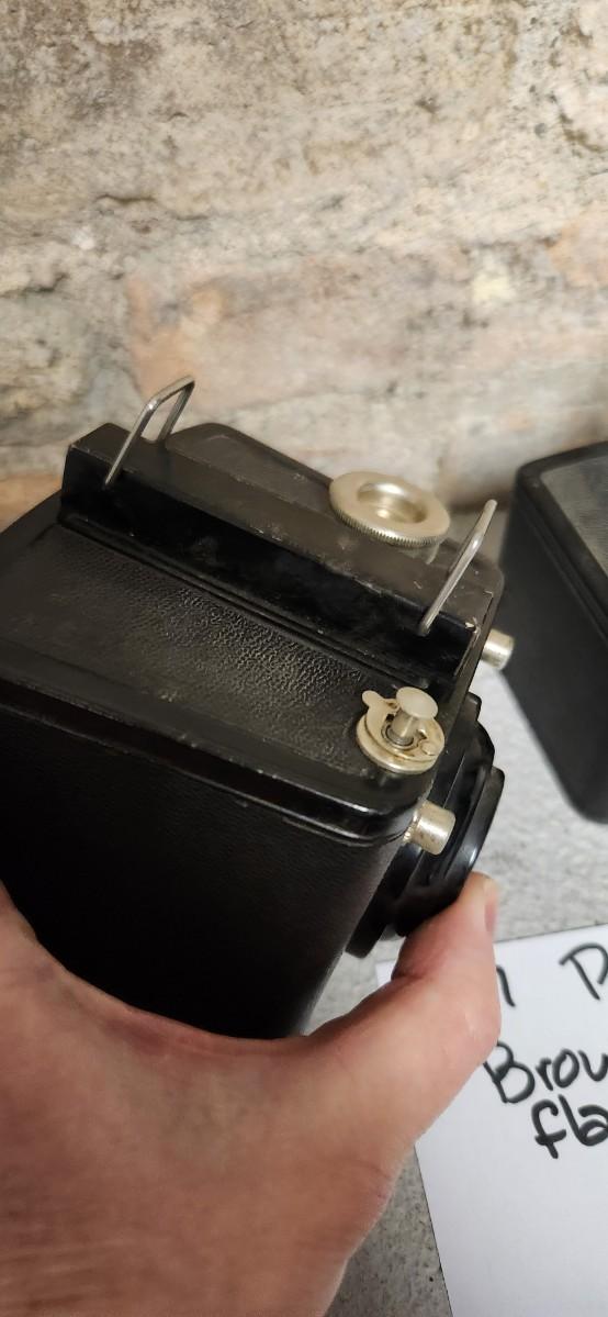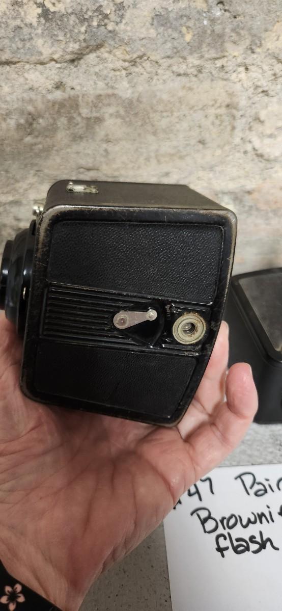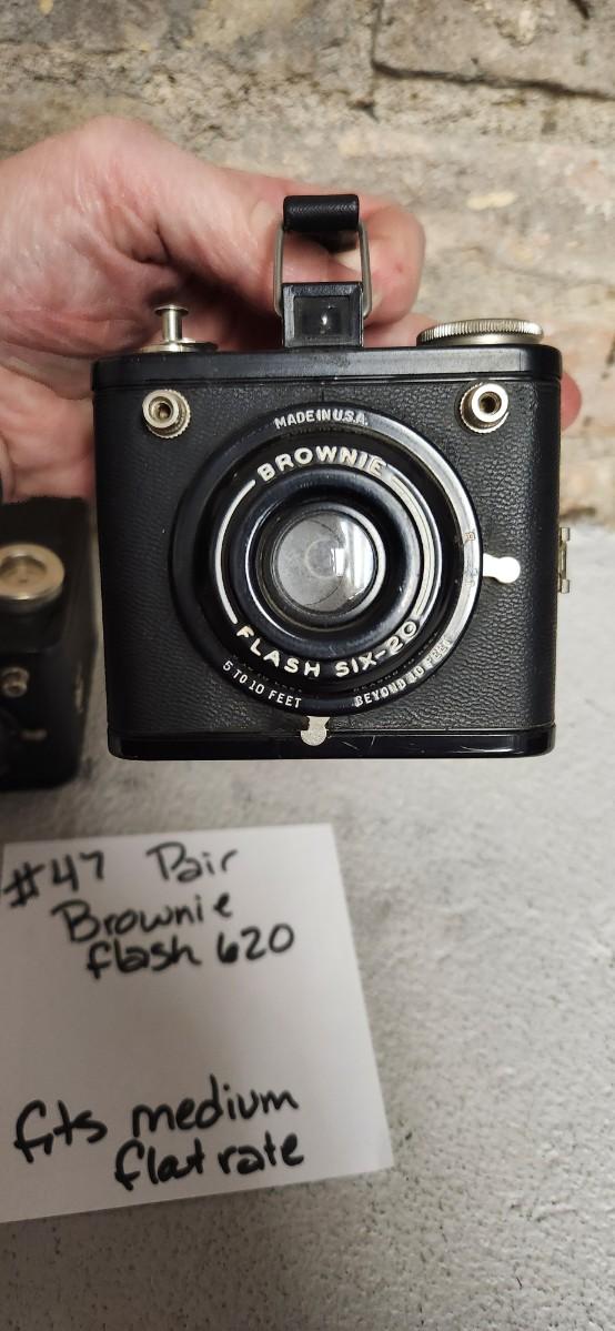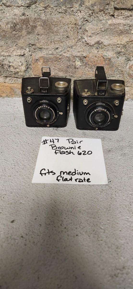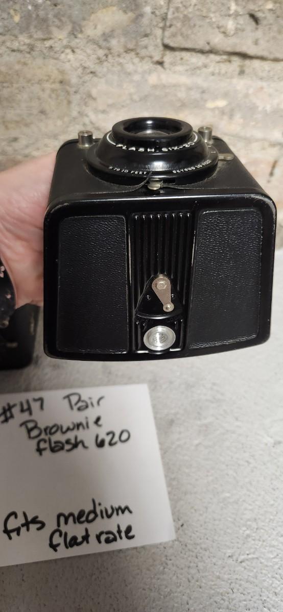 Pair of Brownie Flash 620. One is missing the handle. Fits a medium flat rate box