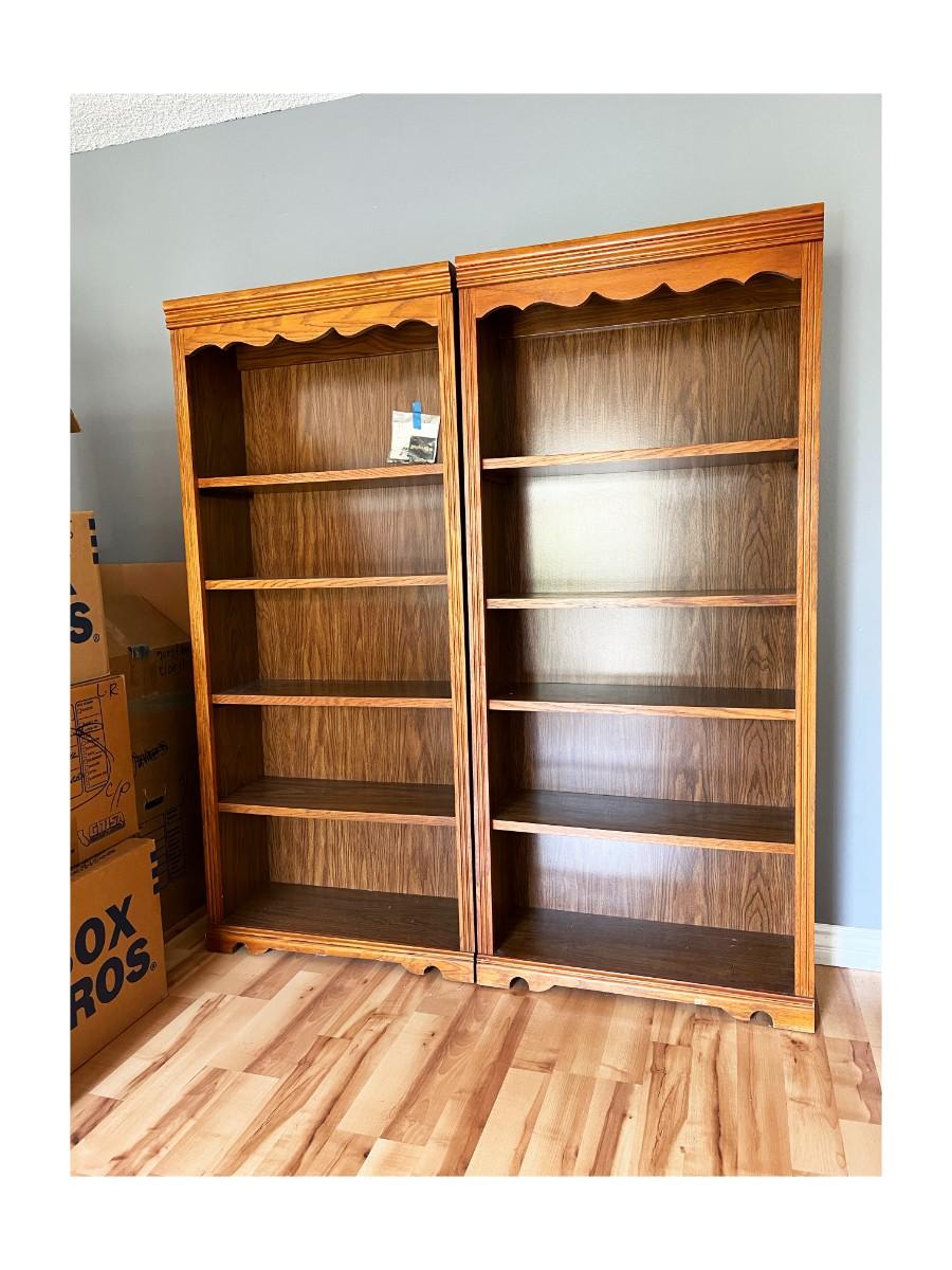 PICK UP ONLY ON THE 20th IN ANAHEIM. CROSS STREET MAGNOLIA AND WINSTON. Pair of Broyhill Light Wood 4 Shelf Bookcase, there are some light scratches around the base of the bookshelf, but there is no significant damage and is in good useable condition. Comes with instructions and hardware for each shelf.