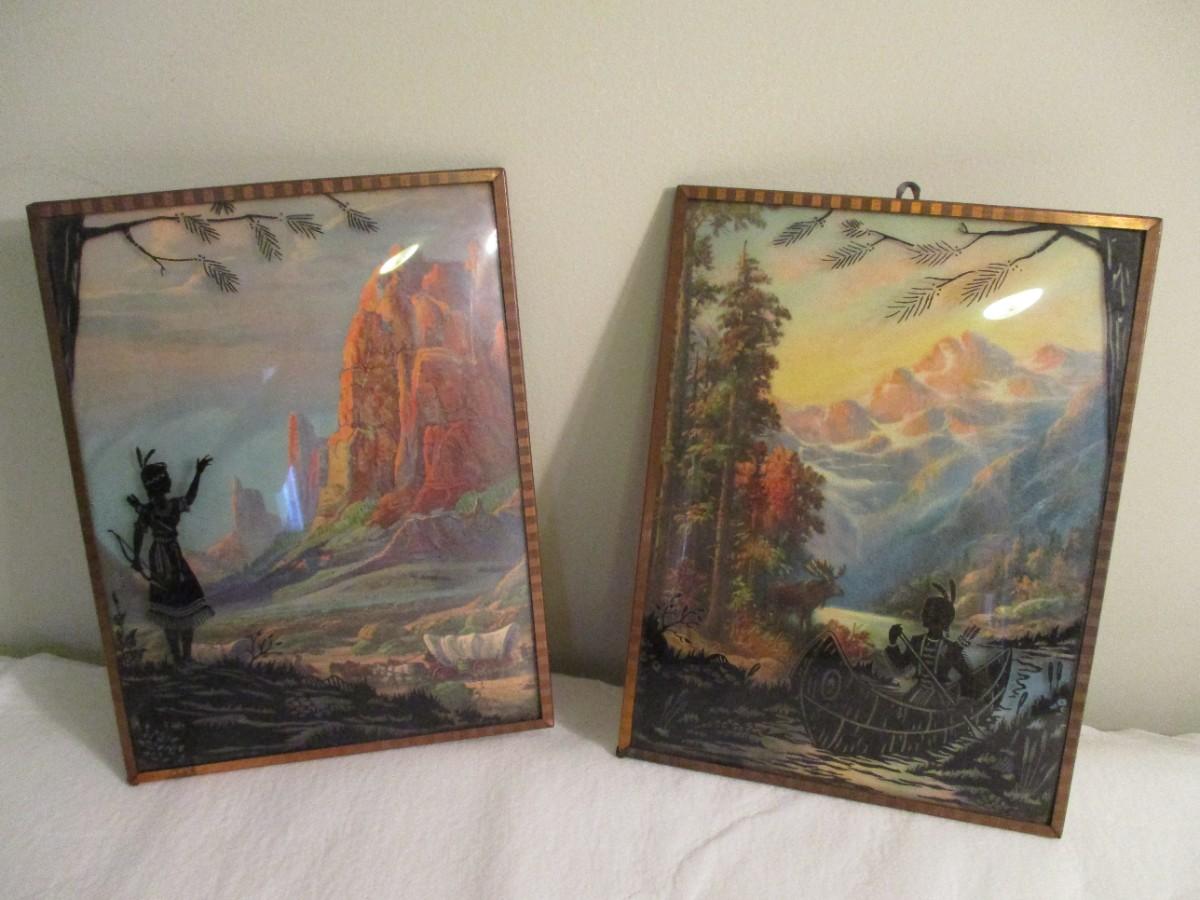 Pair Of Reverse Painting Bubble Glass Pictures 8" x 6"