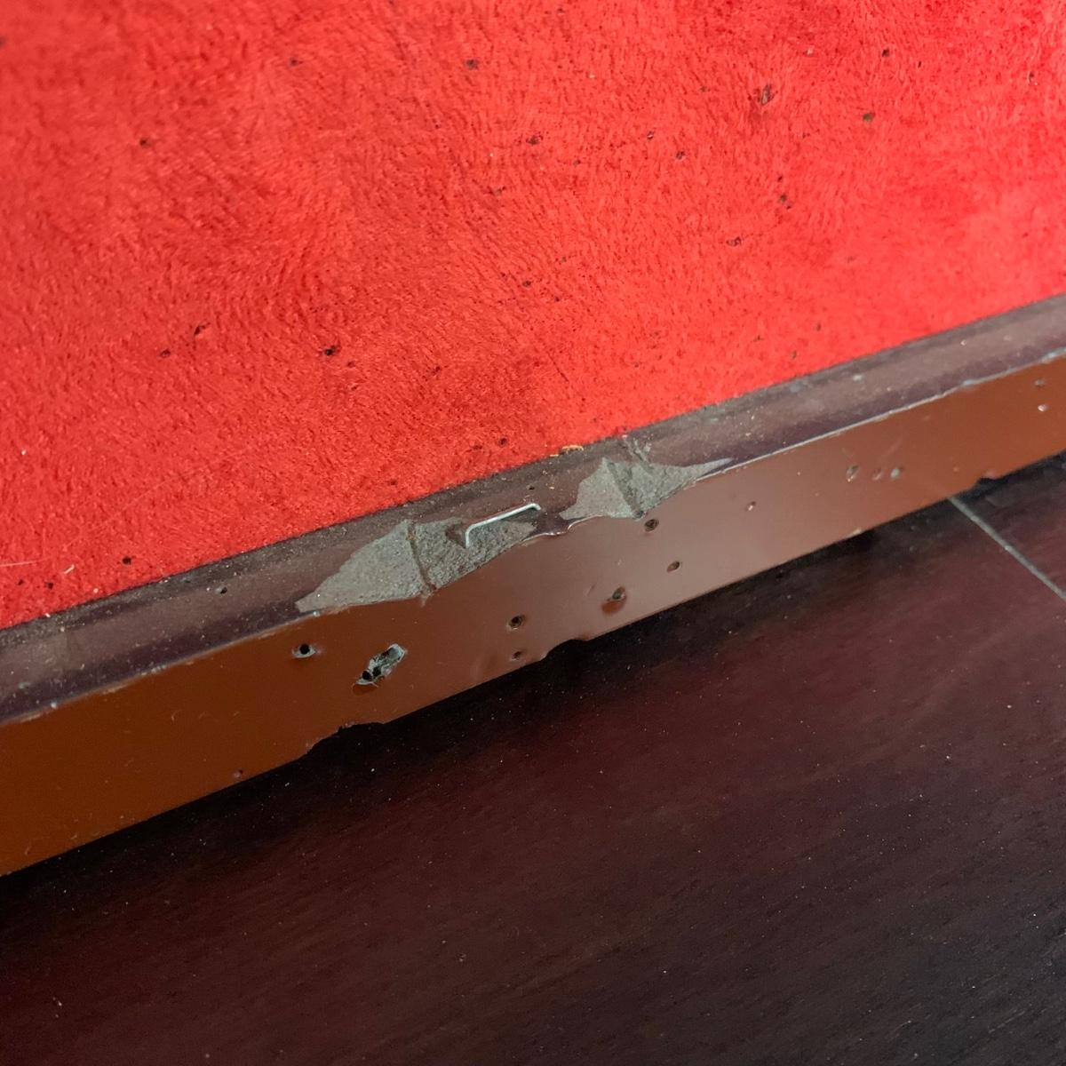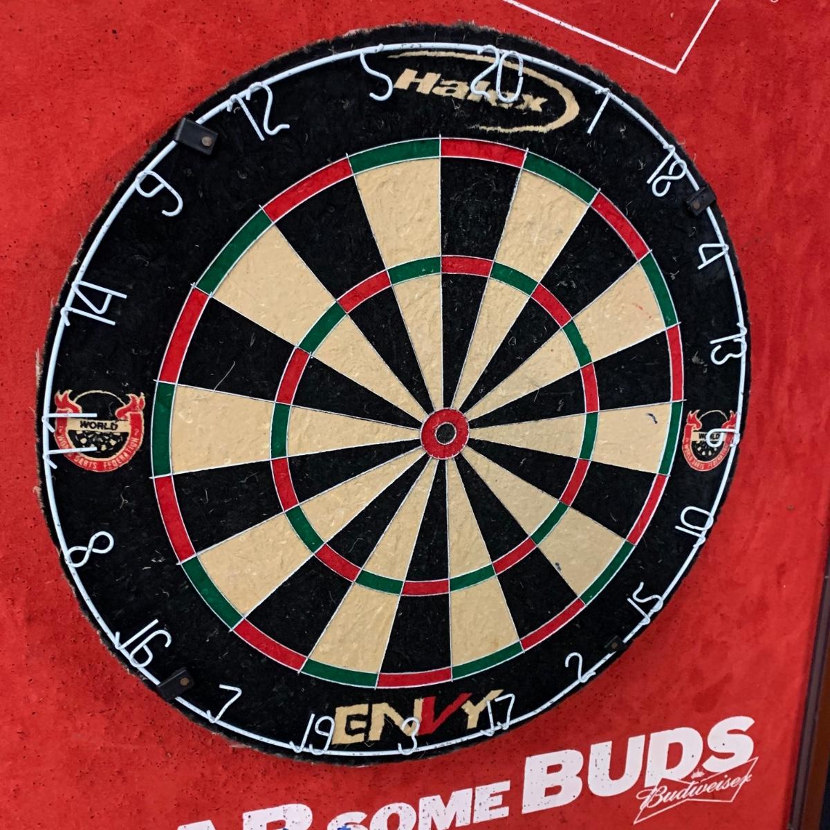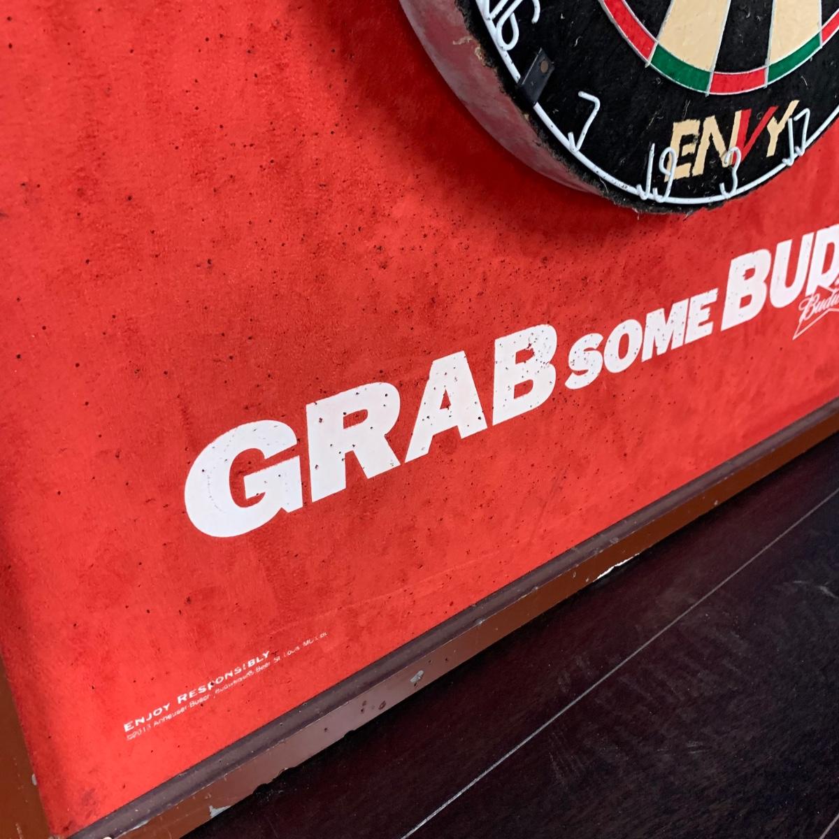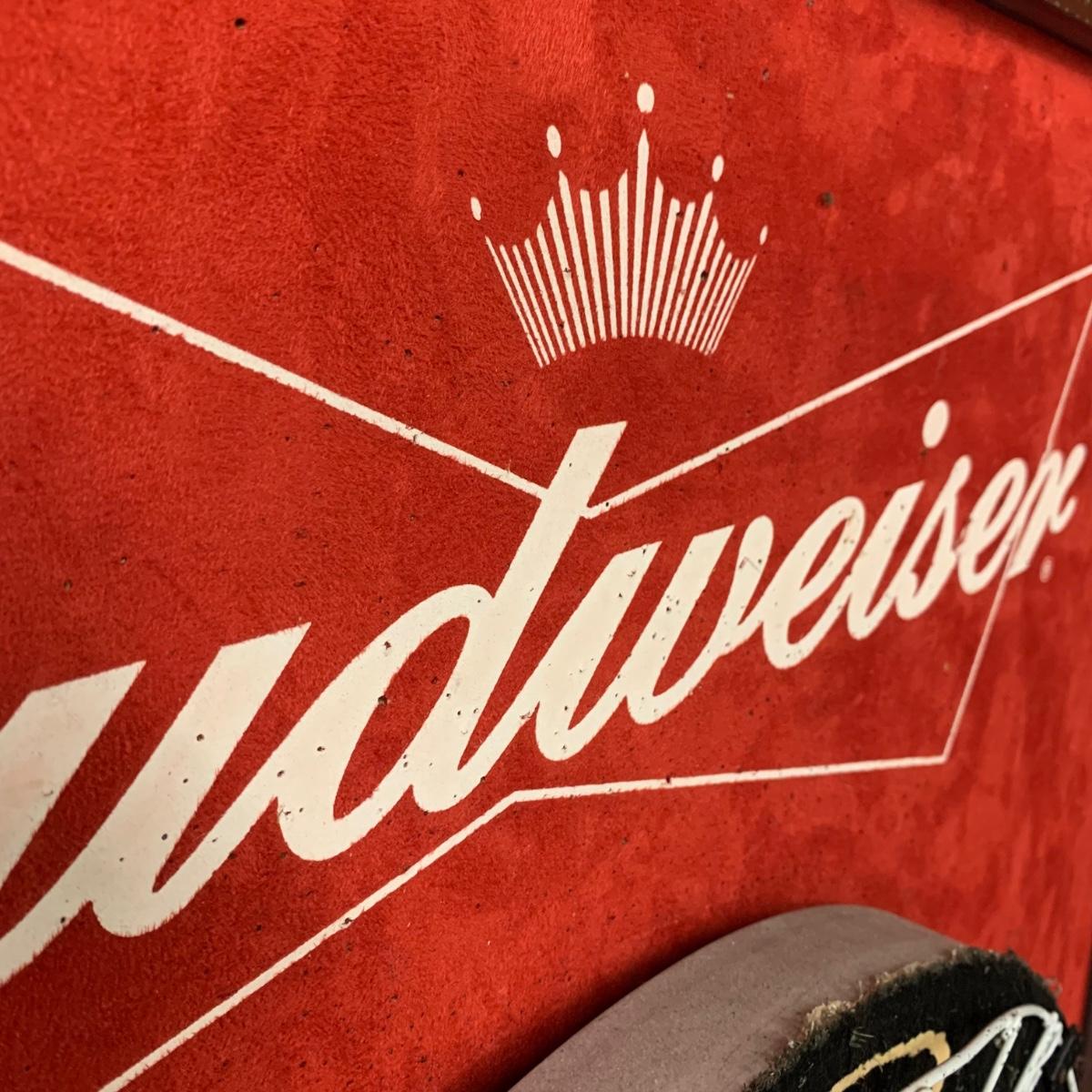 Two matching Budweiser dartboards with frames that each measure 31.25” x 37”. Holes are seen on the boards as evidence of the many games of darts that have been played on them. They each have some chips and paint on their frames. One dart boars does have some marker ink on the text, see attached pictures. The wire with numbers on one of the boards is slightly bent. Both have hardware on the back for hanging on the wall. The red backgrounds have a soft suede feel. Local pickup only.