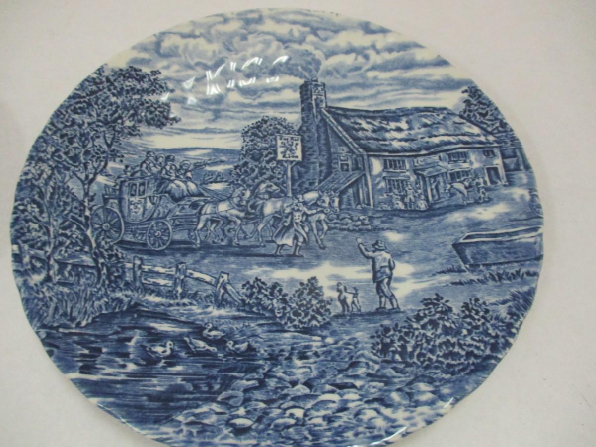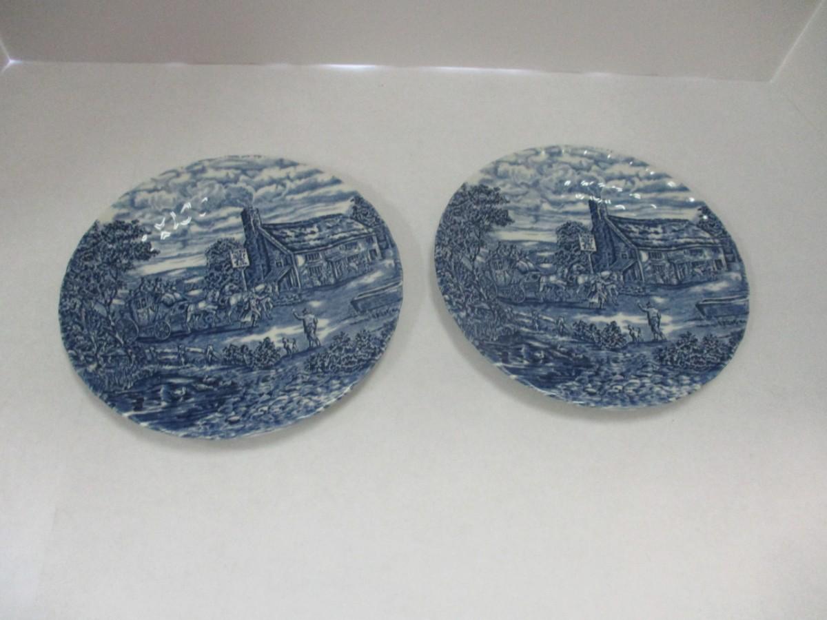 Pair Of Bursley England The Port House Blue Transfer-ware Salad Plate "The Red Lion Inn"